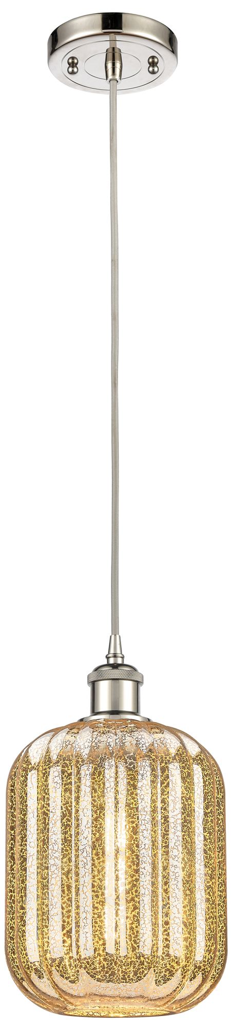 Edison Brookhaven Flute 7"W Polished Nickel Cord Pendant w/ Amber Shade