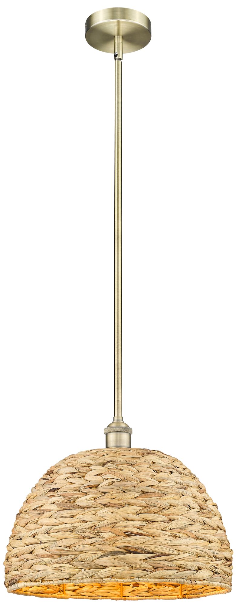 Edison Bristol Natural 8" Wide Antique Brass Semi.Flush Mount With