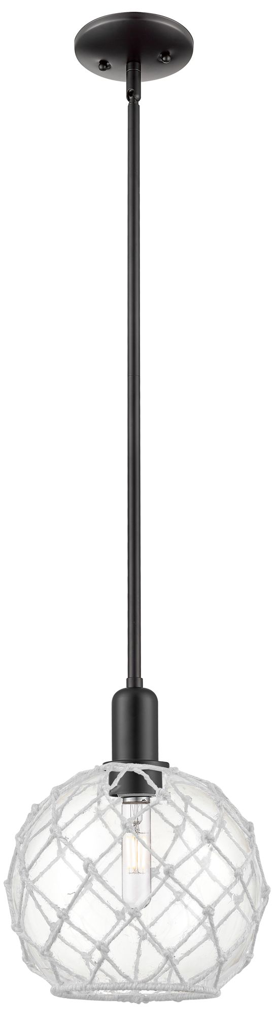 Arcadia Farmhouse Rope 10"W Black Stem Pendant w/ Clear White Shade
