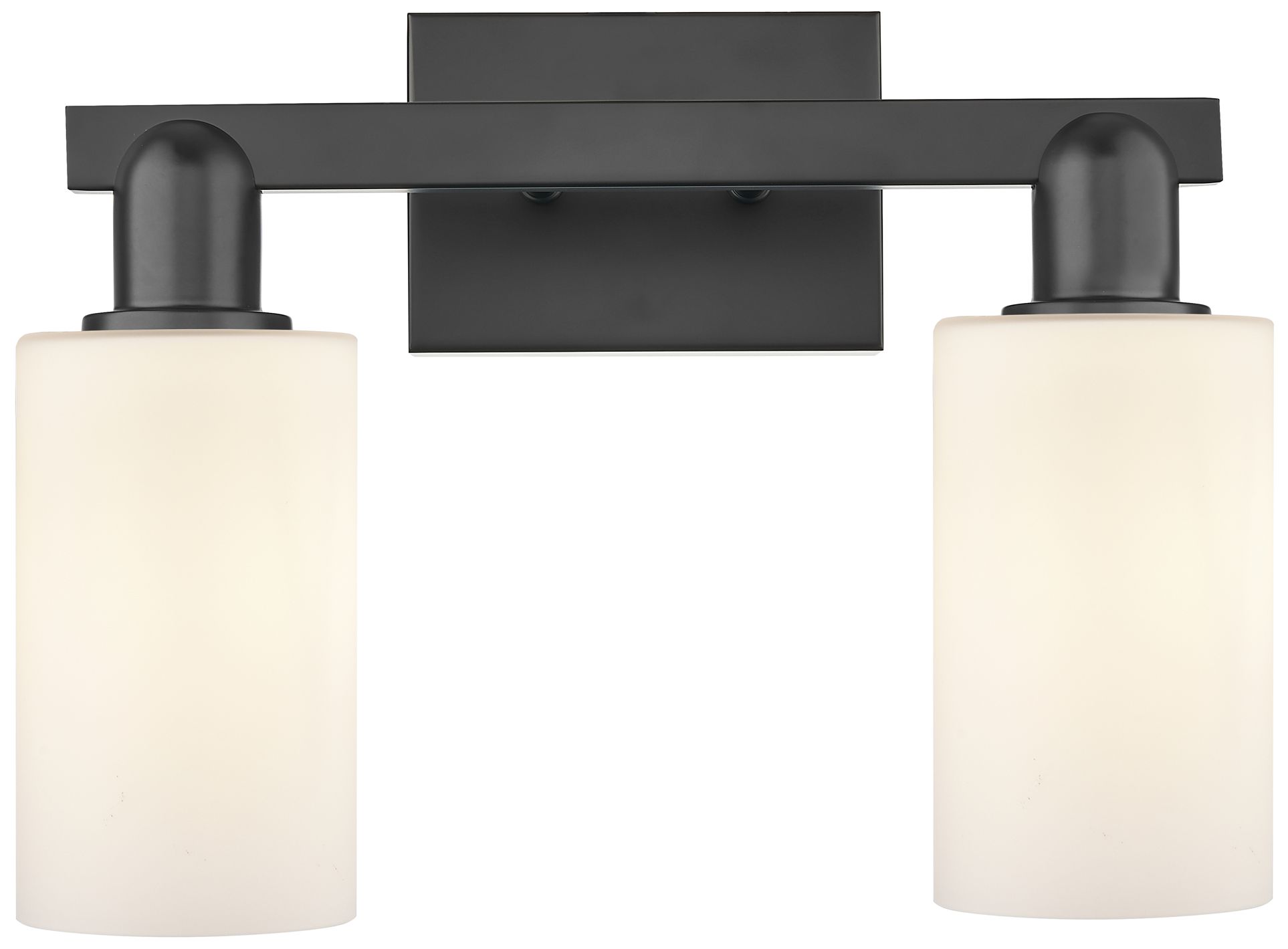 Arcadia Clymer 15"W 2 Light Black Vanity Light w/ Matte White Shade