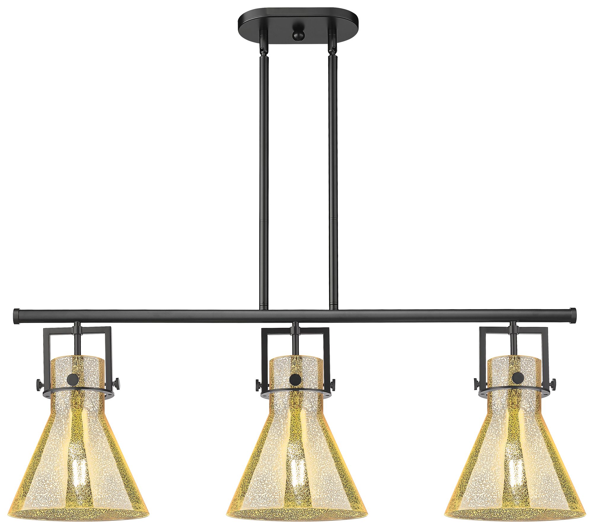 Newton Cone 42"W 3 Light Matte Black Stem Island Light w/ Mercury Shade