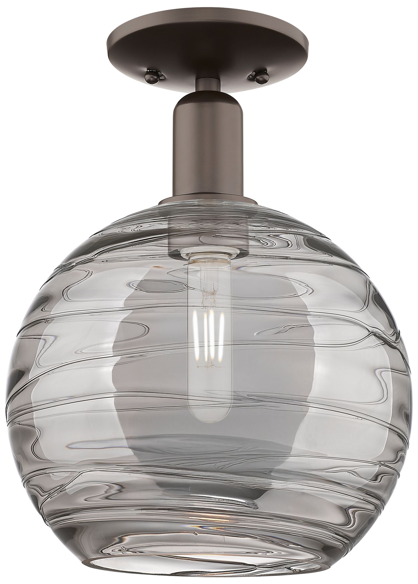 Arcadia Athens 10"W Oiled Bronze Semi-Flush w/ Light Smoke Deco Shade