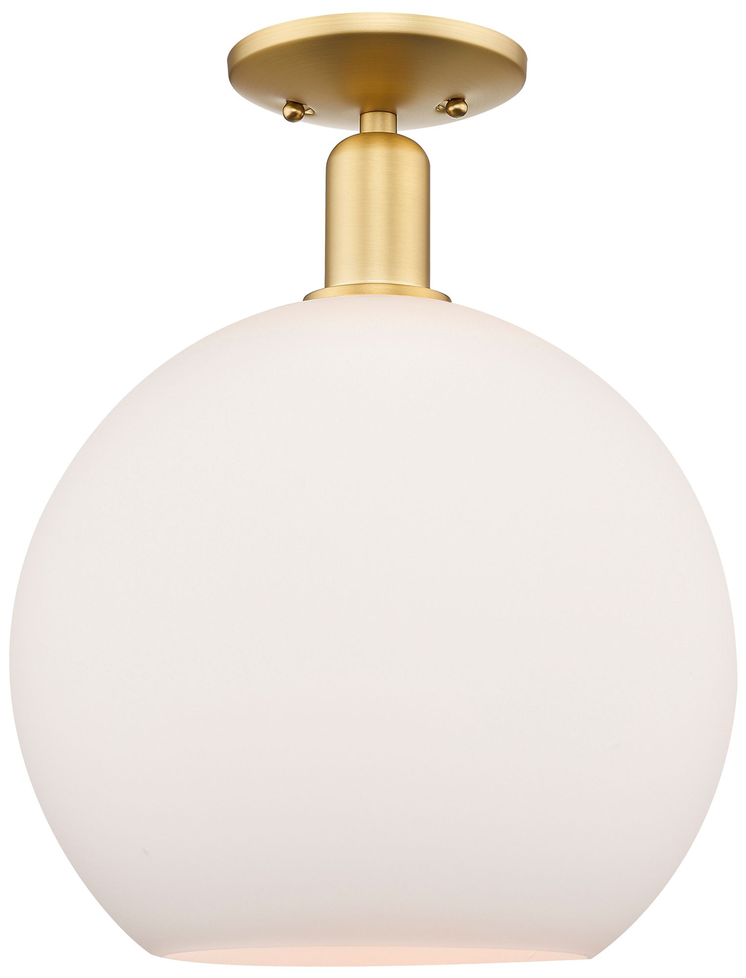 Arcadia Athens 12"W Satin Gold Semi.Flush Mount With Matte White Shade