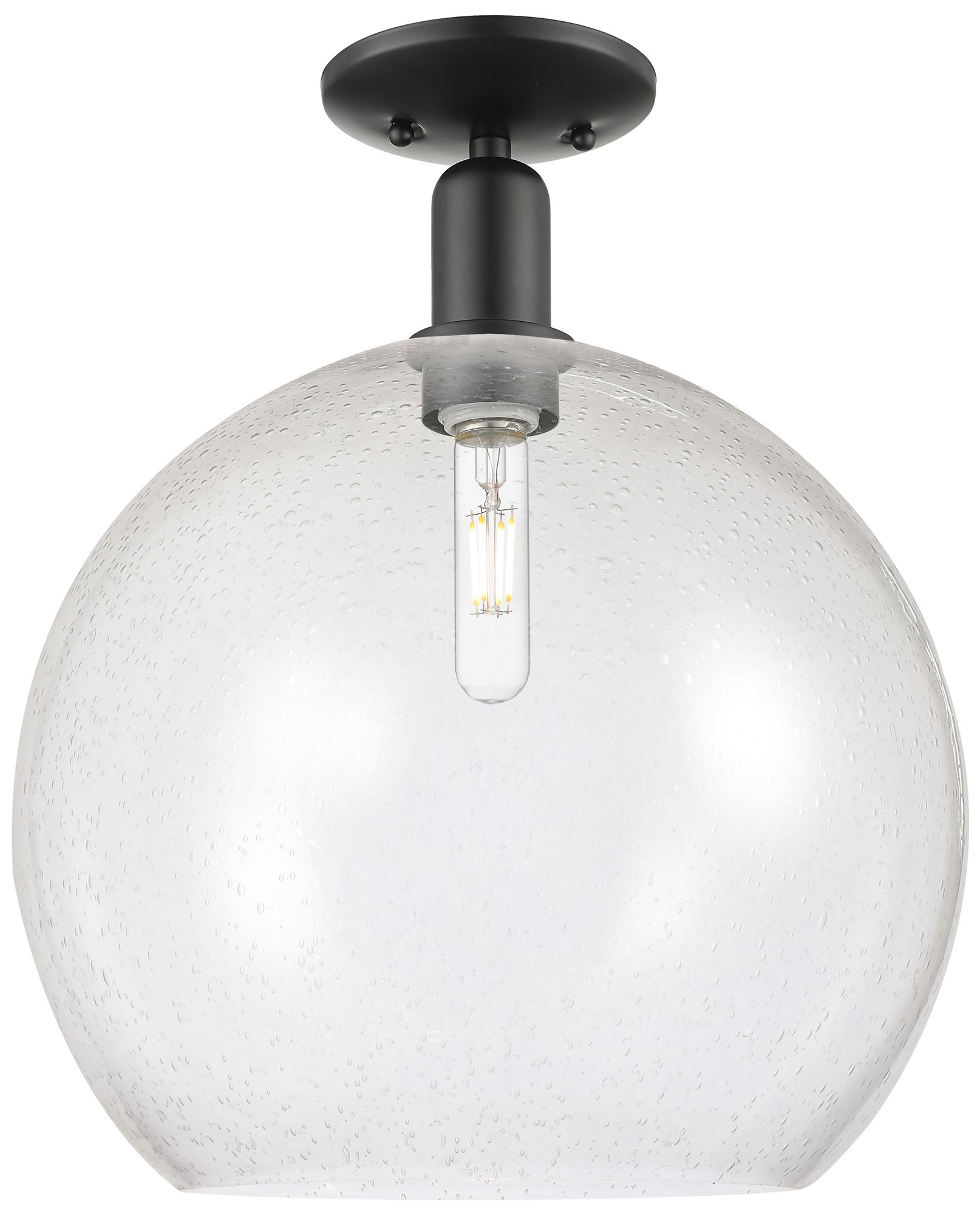 Arcadia Athens 14" Wide Matte Black Semi.Flush Mount With Seedy Shade