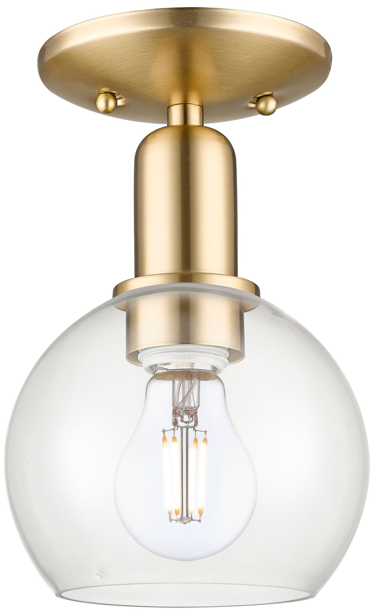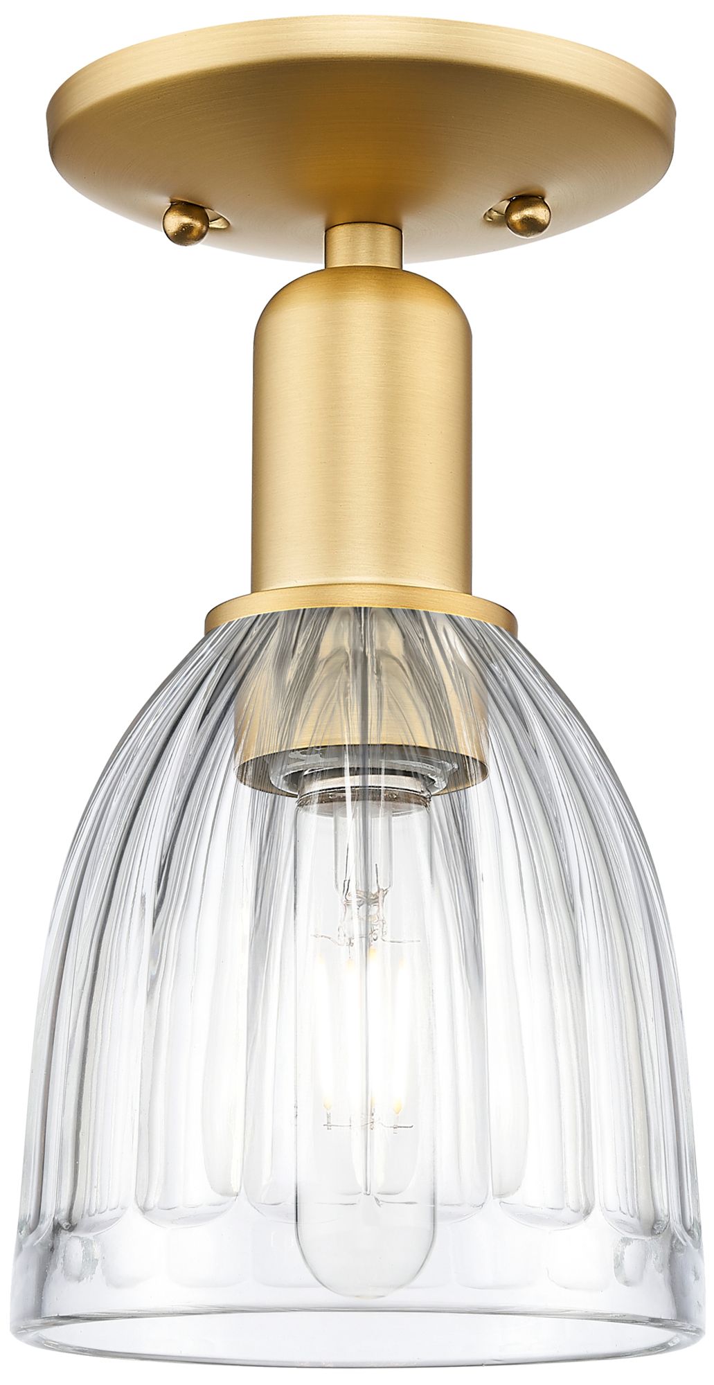 Arcadia Brookfield 6"W Satin Gold Semi.Flush Mount With Clear Shade