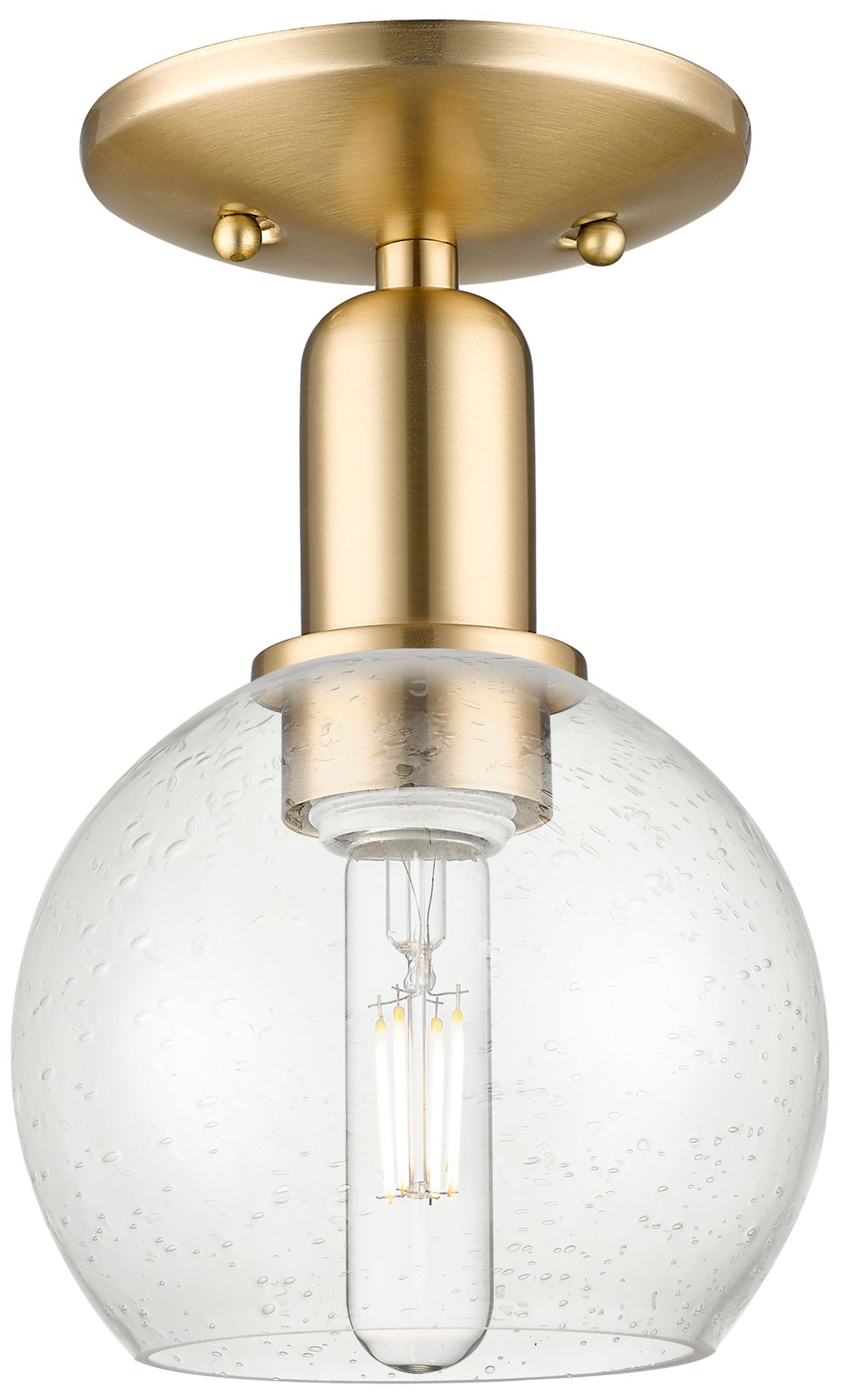 Arcadia Athens 14"W Brushed Brass Semi.Flush Mount With Seedy Shade