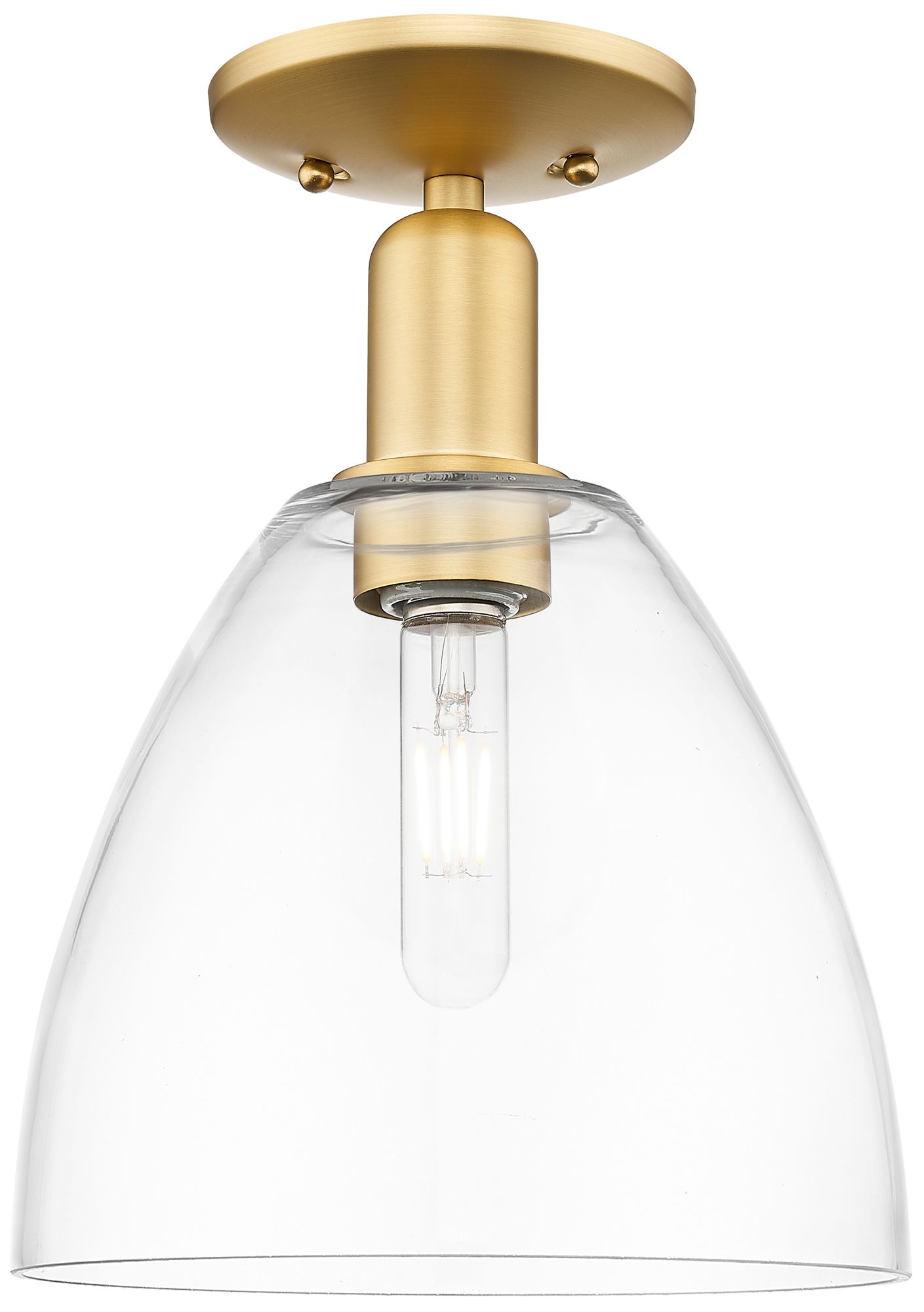 Arcadia Bristol 9" Wide Satin Gold Semi.Flush Mount With Clear Shade