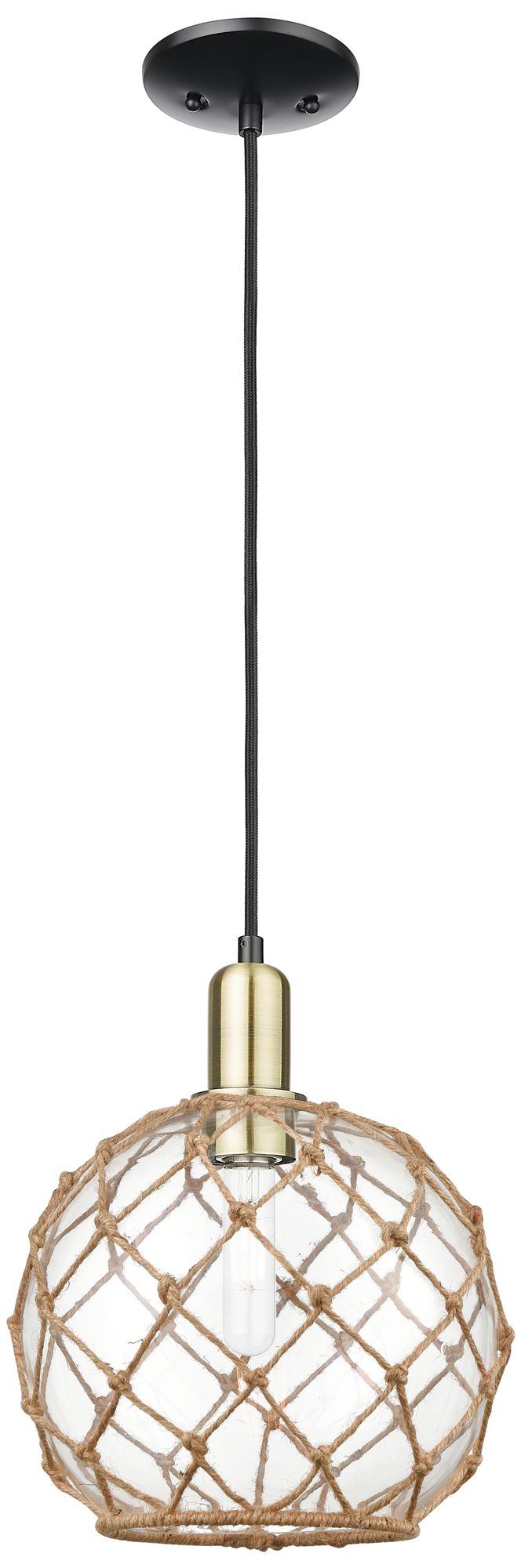 Arcadia Farmhouse 10"W Black Brass Cord Pendant w/ Clear Brown Shade