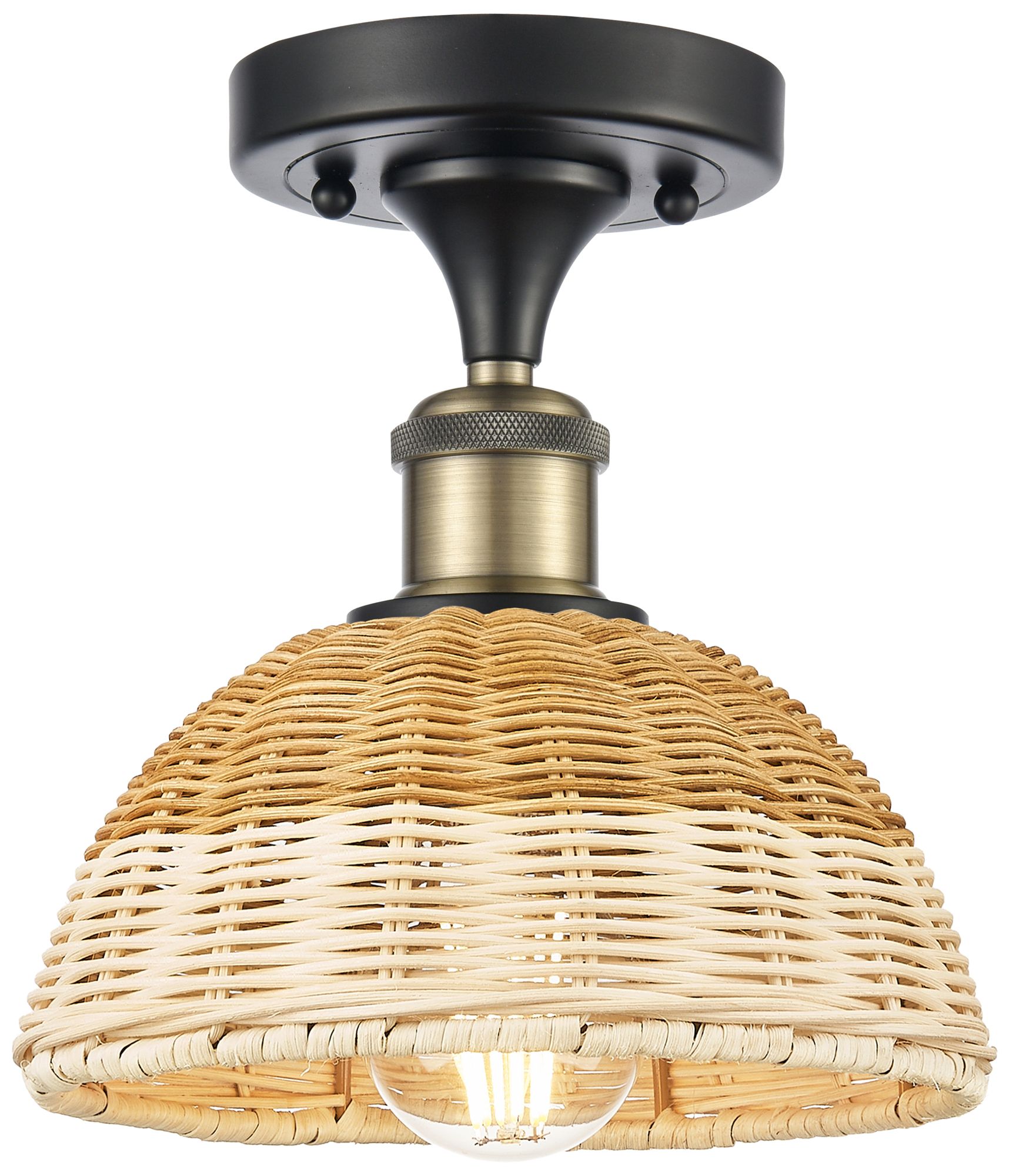 Ballston Bristol Natural II 8"W Black Antique Brass Semi.Flush Mount