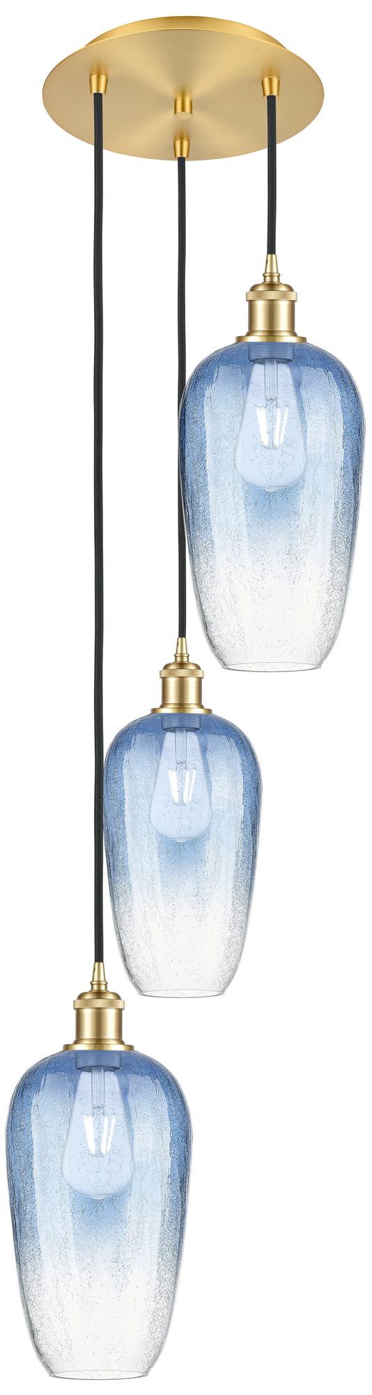 Ballston Brookhaven Flute 14"W 3-Lt Gold Cord Pendant w/ Sapphire Shade