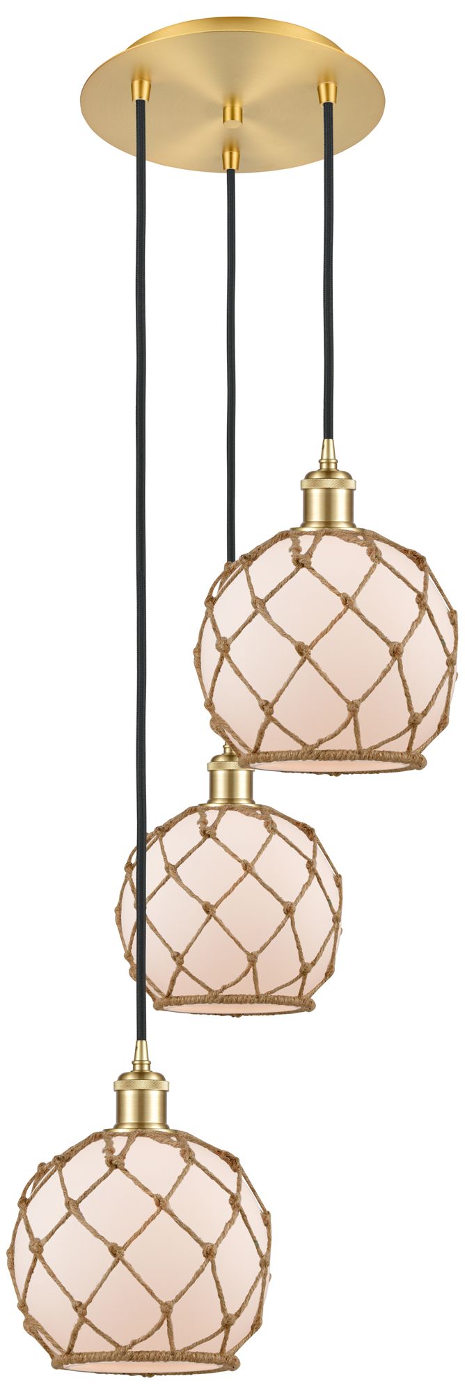 Ballston Farmhouse 15"W 3 Light Gold Cord Pendant w/ White Brown Shade