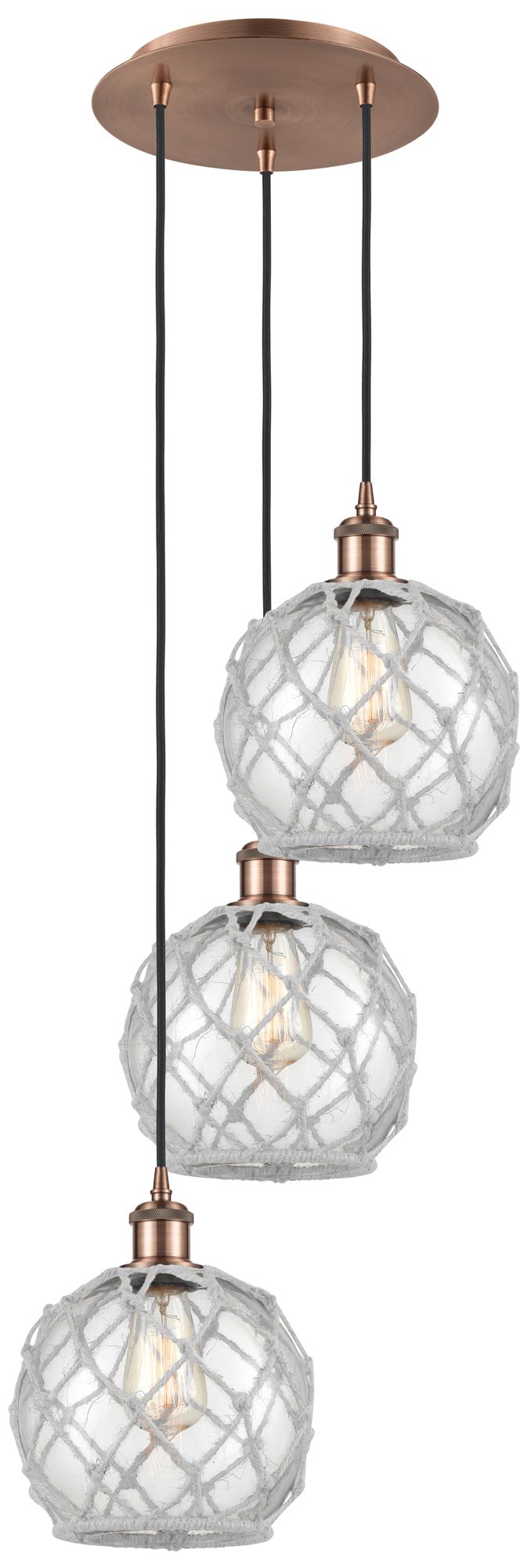 Ballston Preston 13"W 3 Light Copper Cord Pendant w/ Clear Jar Shade