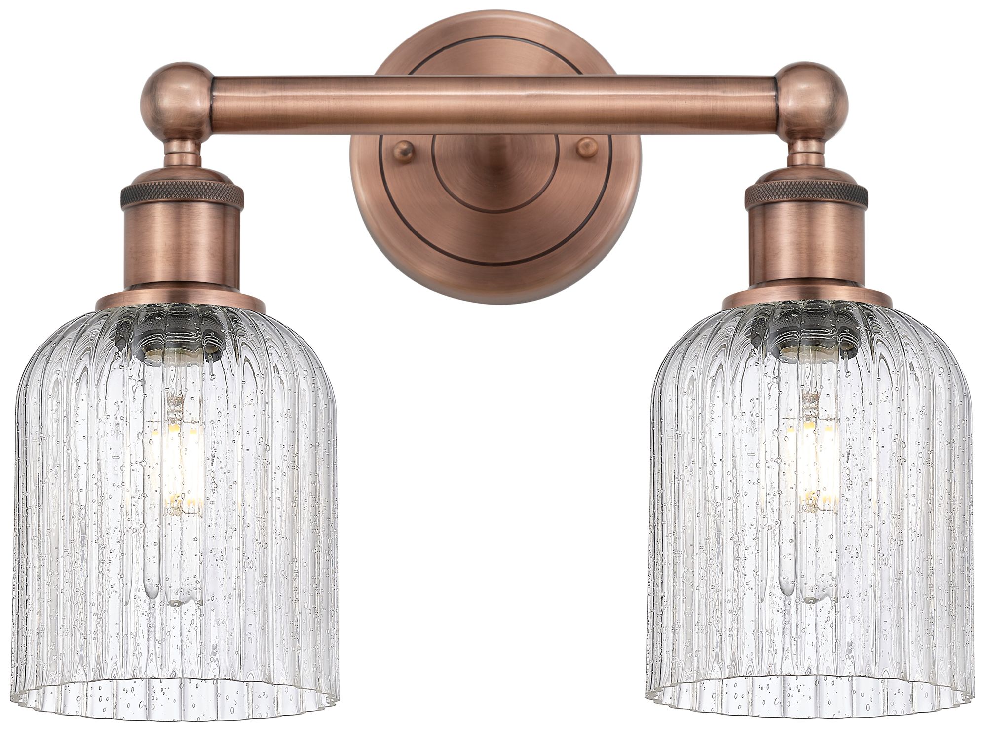 Edison Bridal Veil 2 Light 14" Bath Vanity Antique Copper Seedy Shade