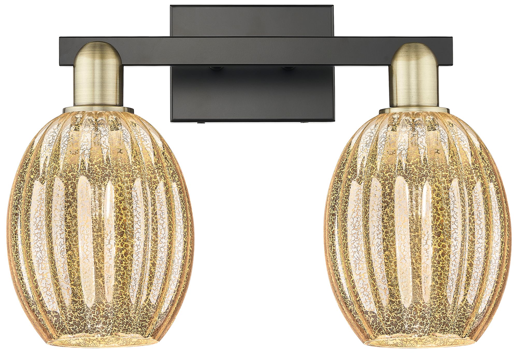 Preston 16"W 2 Light Black Brass Bath Light With Bell Mercury Shade