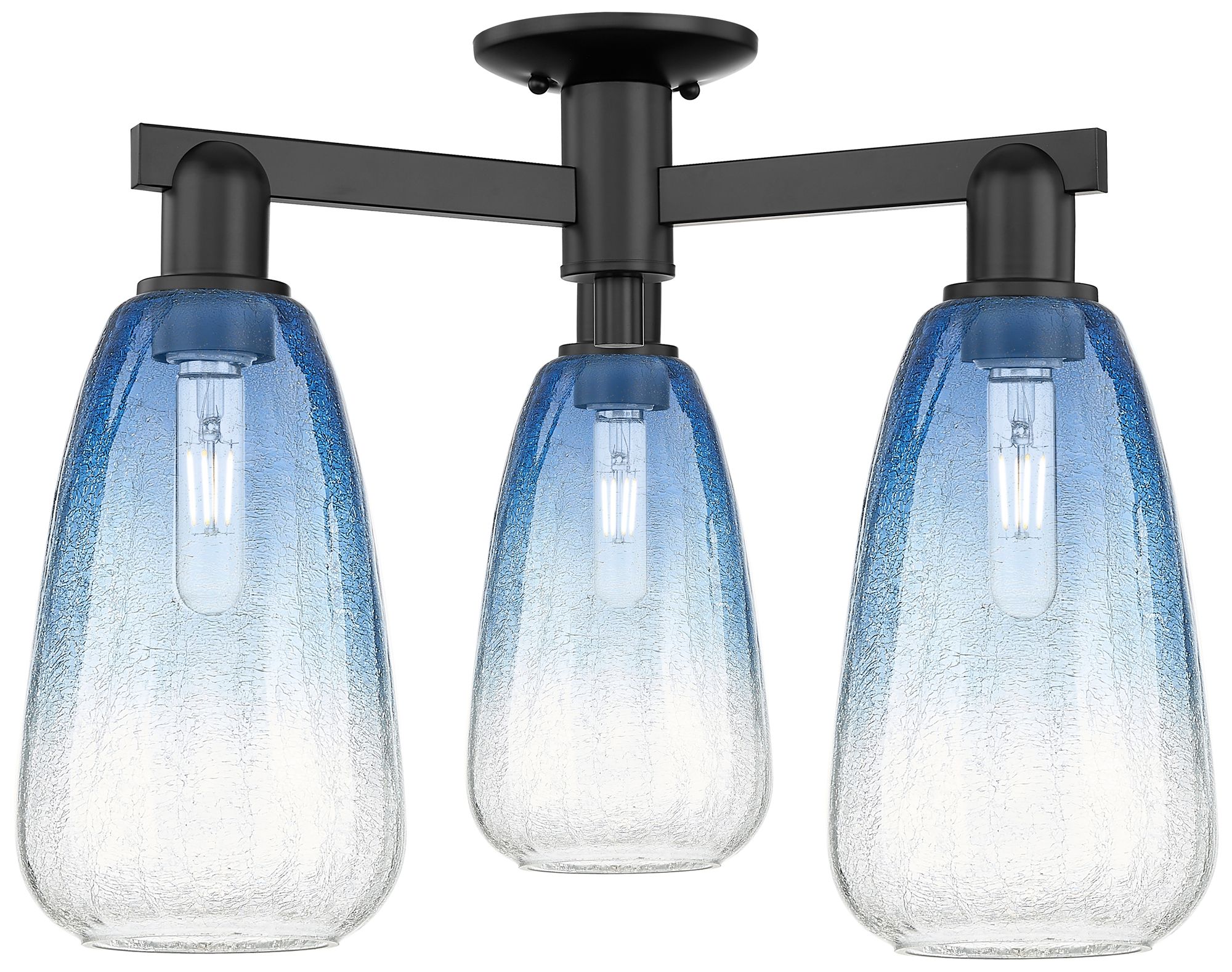Brookhaven Cloche 25"W 3 Light Matte Black Semi-Flush w/ Sapphire Shade