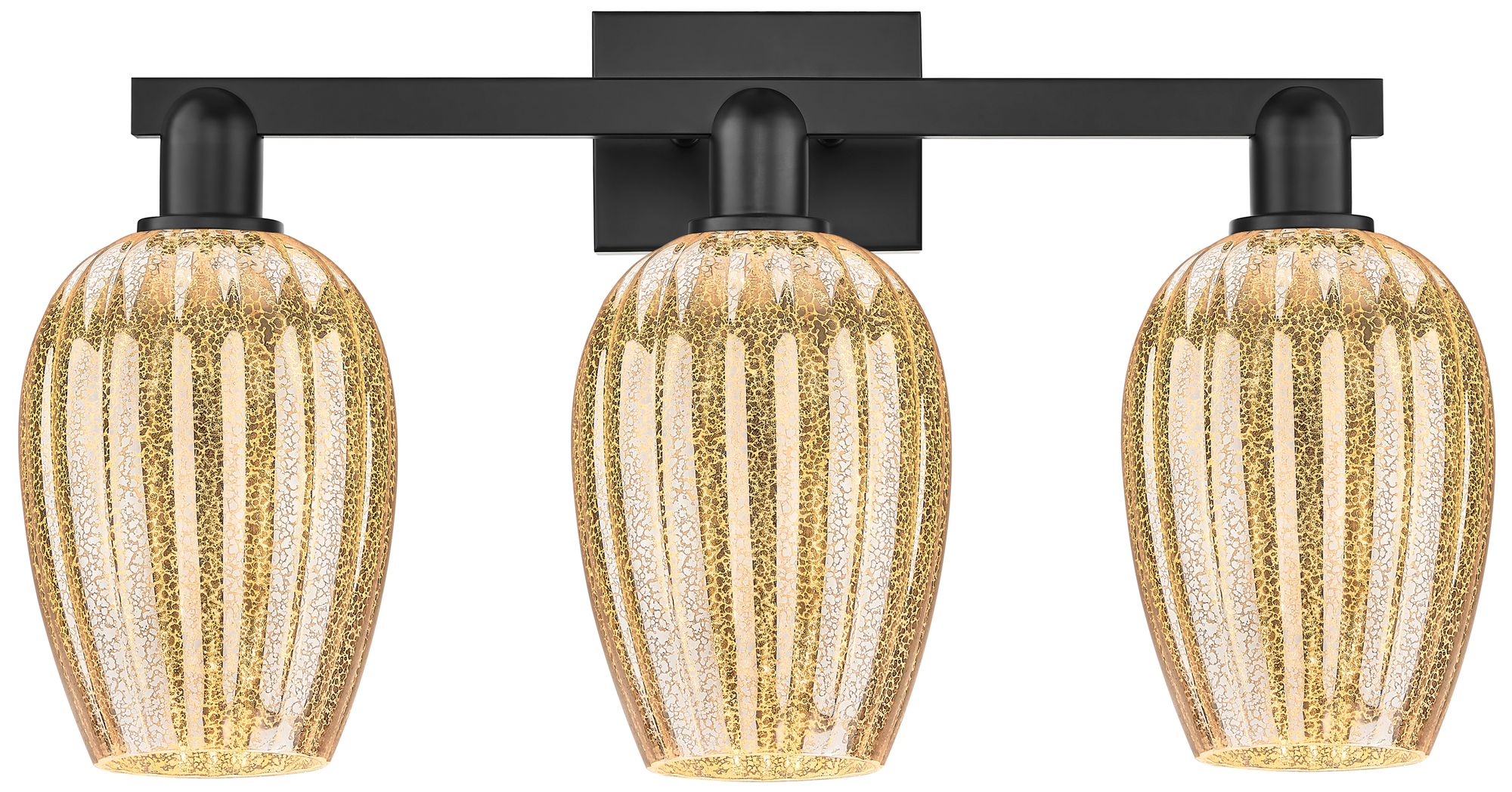 Preston 26"W 3 Light Matte Black Bath Light With Mercury Flute Shade