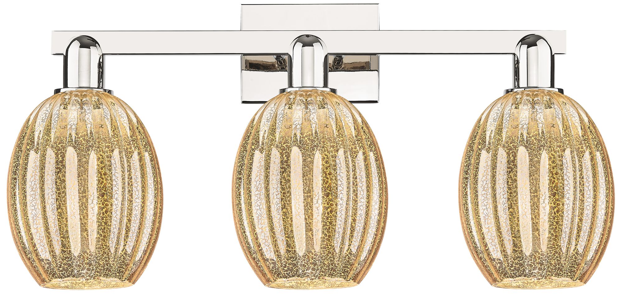 Preston 26"W 3 Light Polished Nickel Bath Light With Bell Mercury Shade