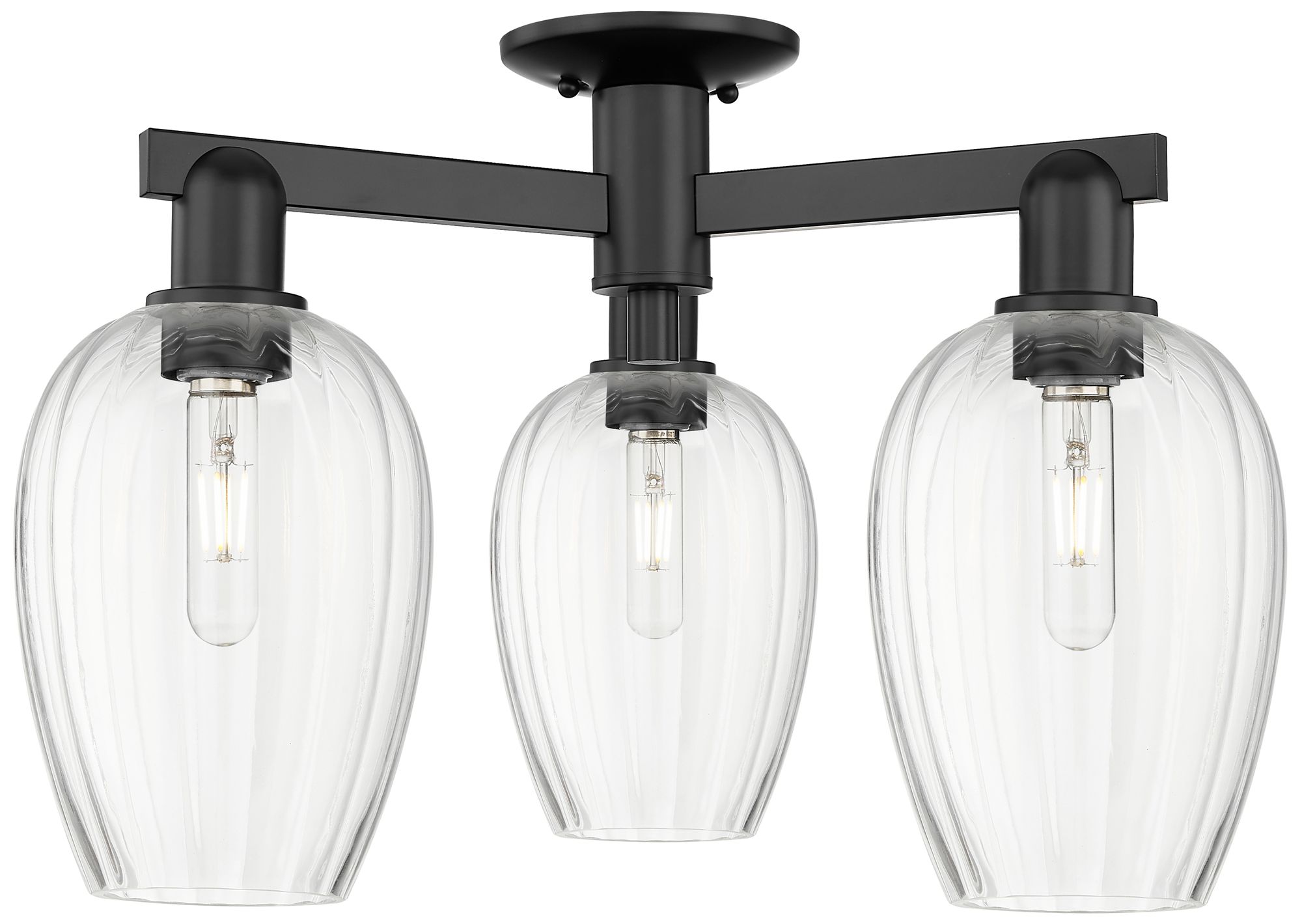 Preston 24"W 3 Light Matte Black Semi-Flush With Flute Clear Shade