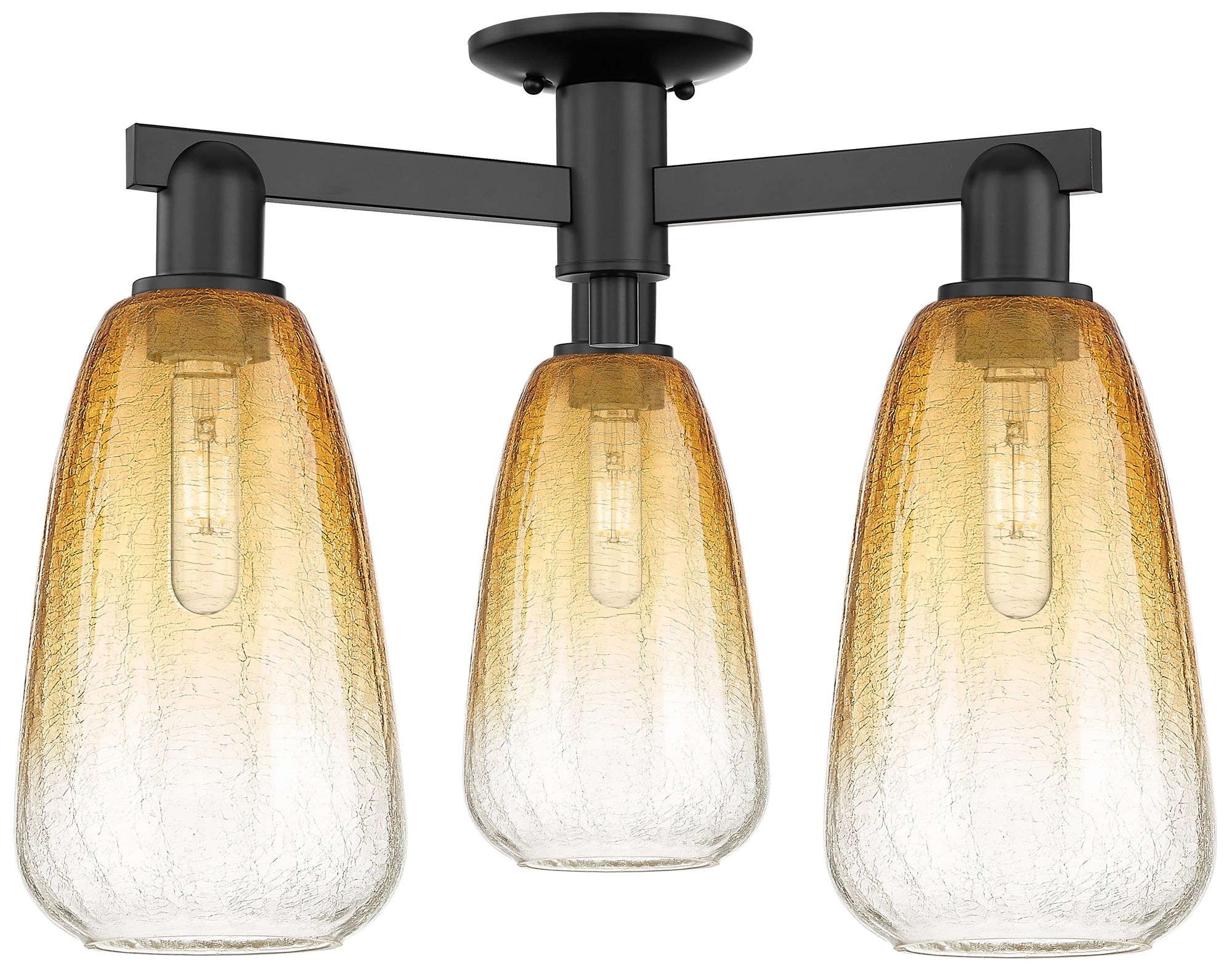 Brookhaven Almond 24"W 3 Light Matte Black Semi-Flush With Amber Shade