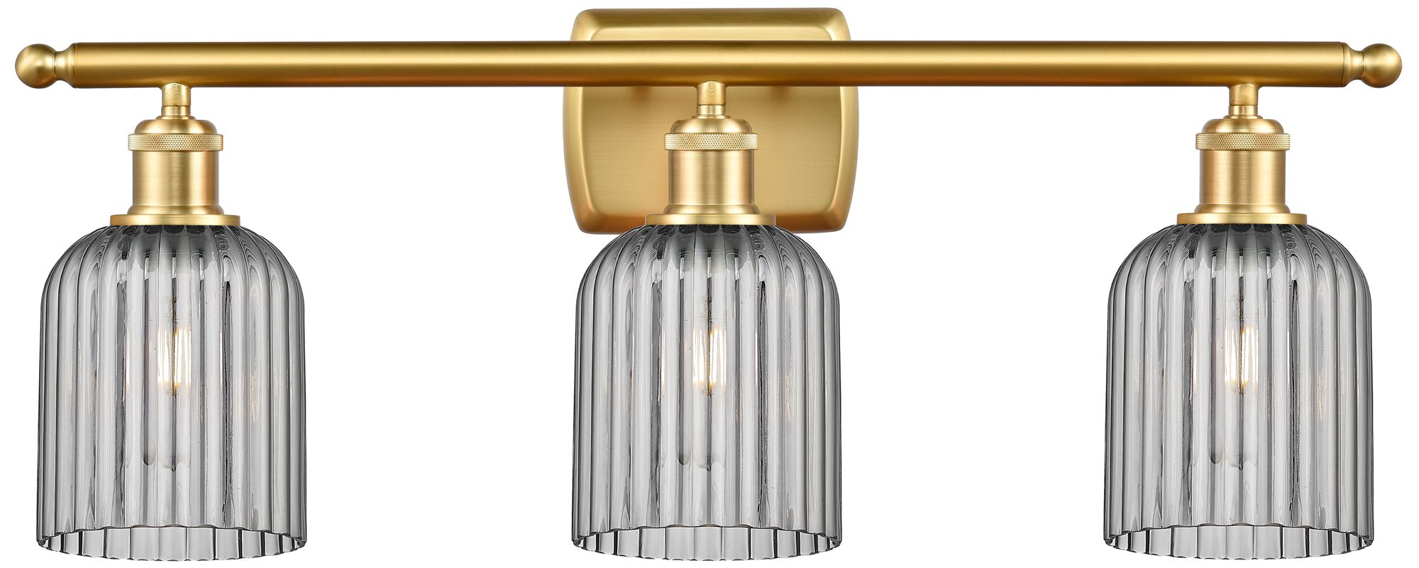Ballston Brookhaven Flute 27"W 3 Light Gold Bath Light w/ Slate Shade