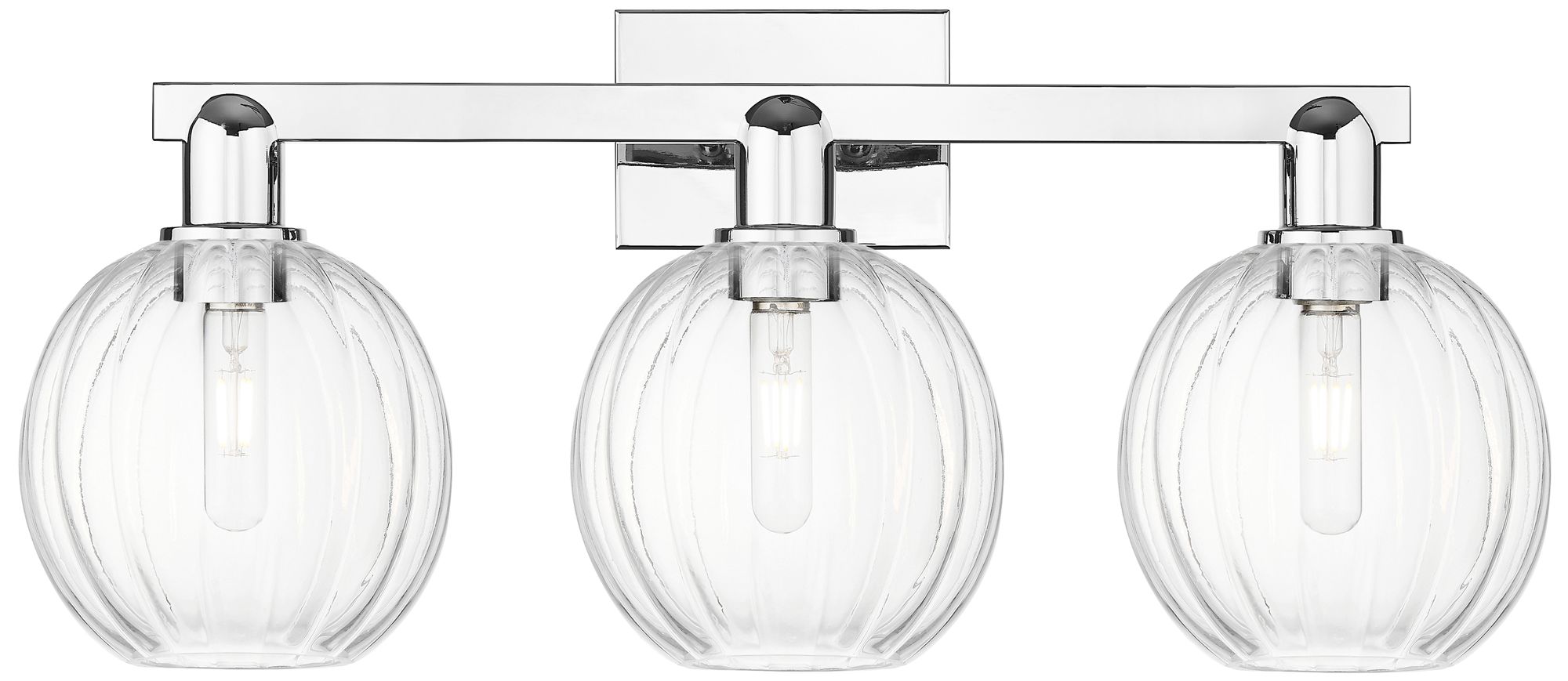 Preston 26"W 3 Light Polished Chrome Bath Light With Clear Globe Shade