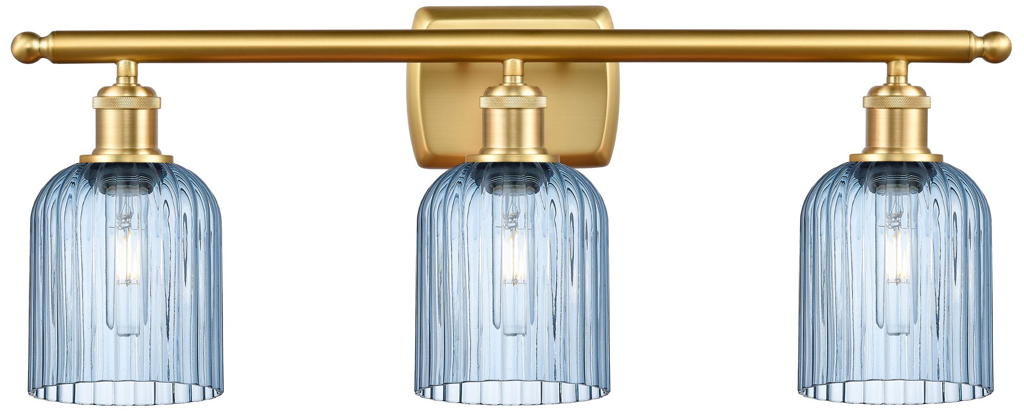 Ballston Bridal Veil 3 Light 25" Bath Vanity Satin Gold Princess Blue Shade