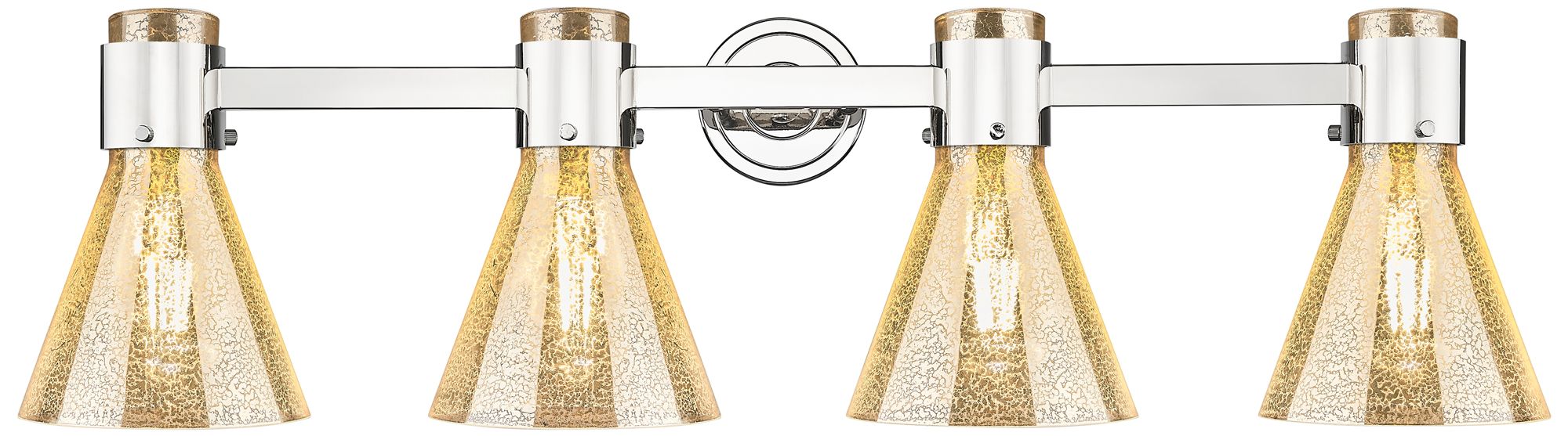 Downtown Lawton Cone 34"W 4 Light Nickel Vanity Light w/ Mercury Shade