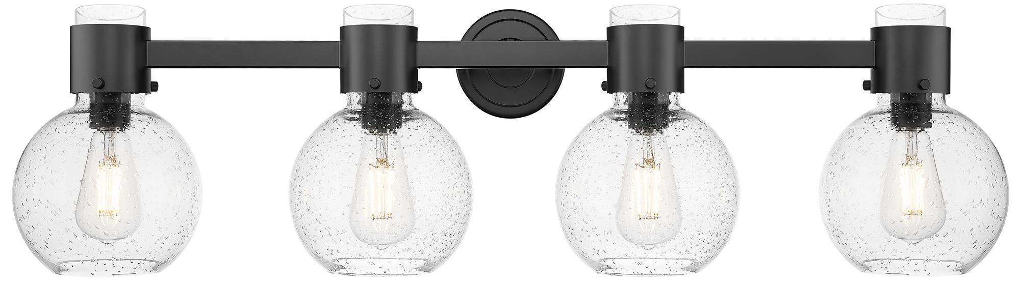 Downtown Lawton Sphere 34"W 4 Light Black Vanity Light w/ Seedy Shade