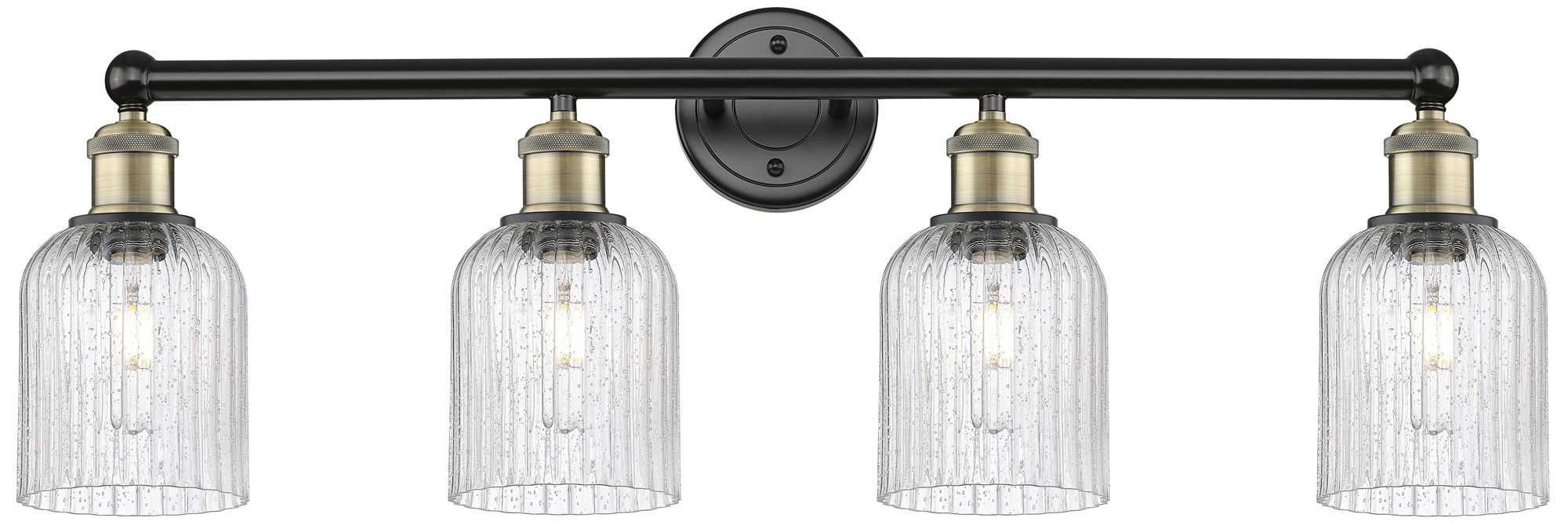 Edison Bridal Veil 4 Light 32" Bath Vanity Black Antique Brass Seedy Shade