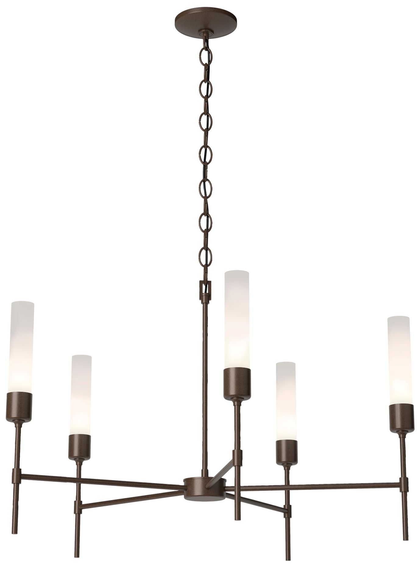 Vela 30.3" Wide 5 Arm Bronze Chandelier With Frosted Glass