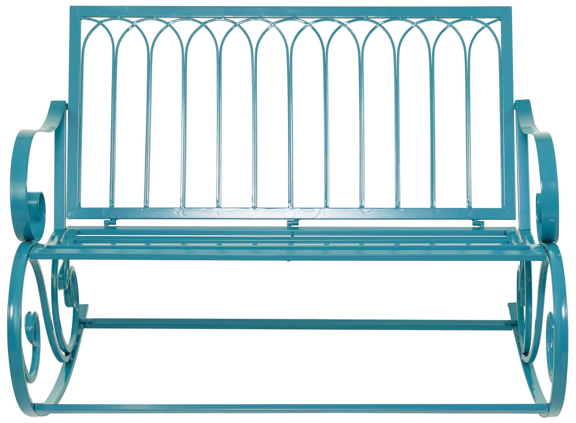 Teal Metal Eclectic Outdoor Bench, 49" x 37" x 37"