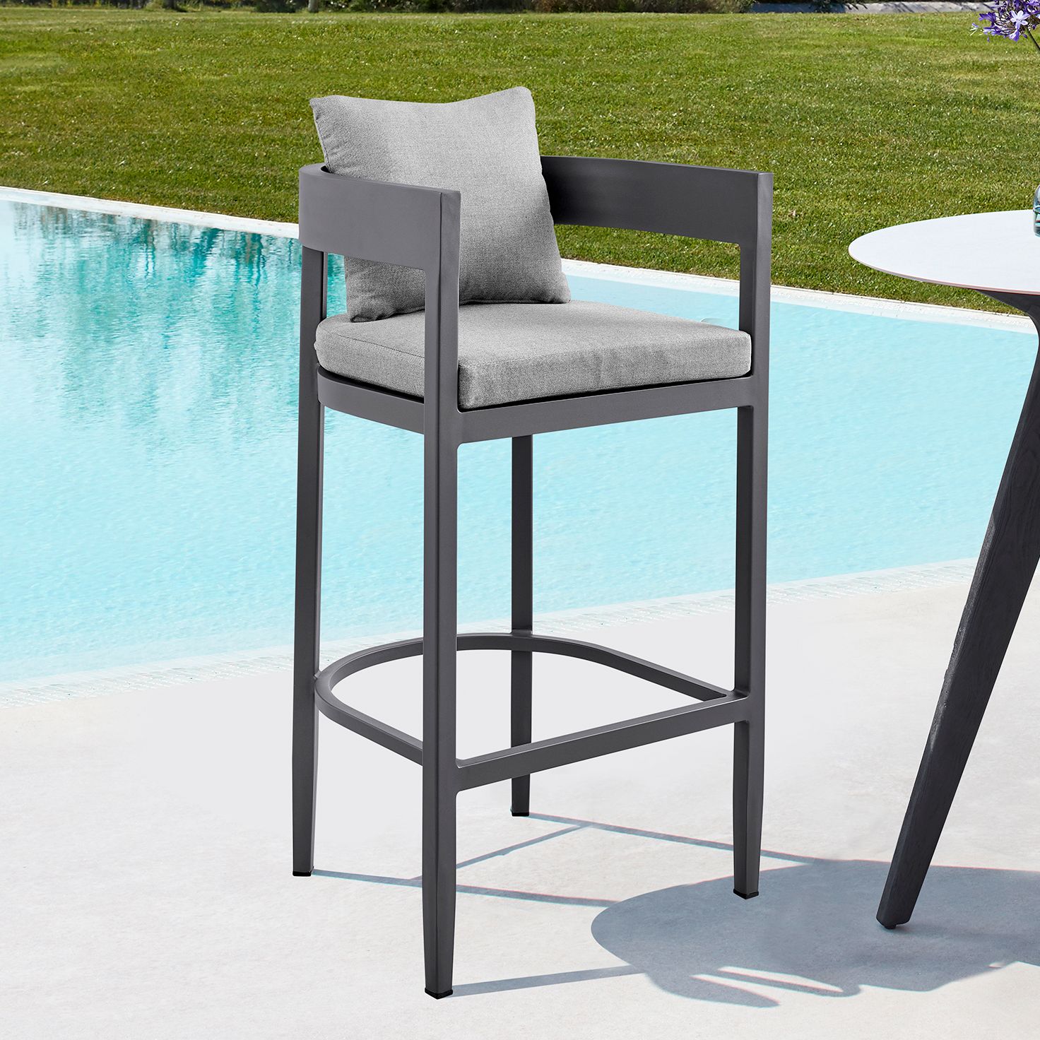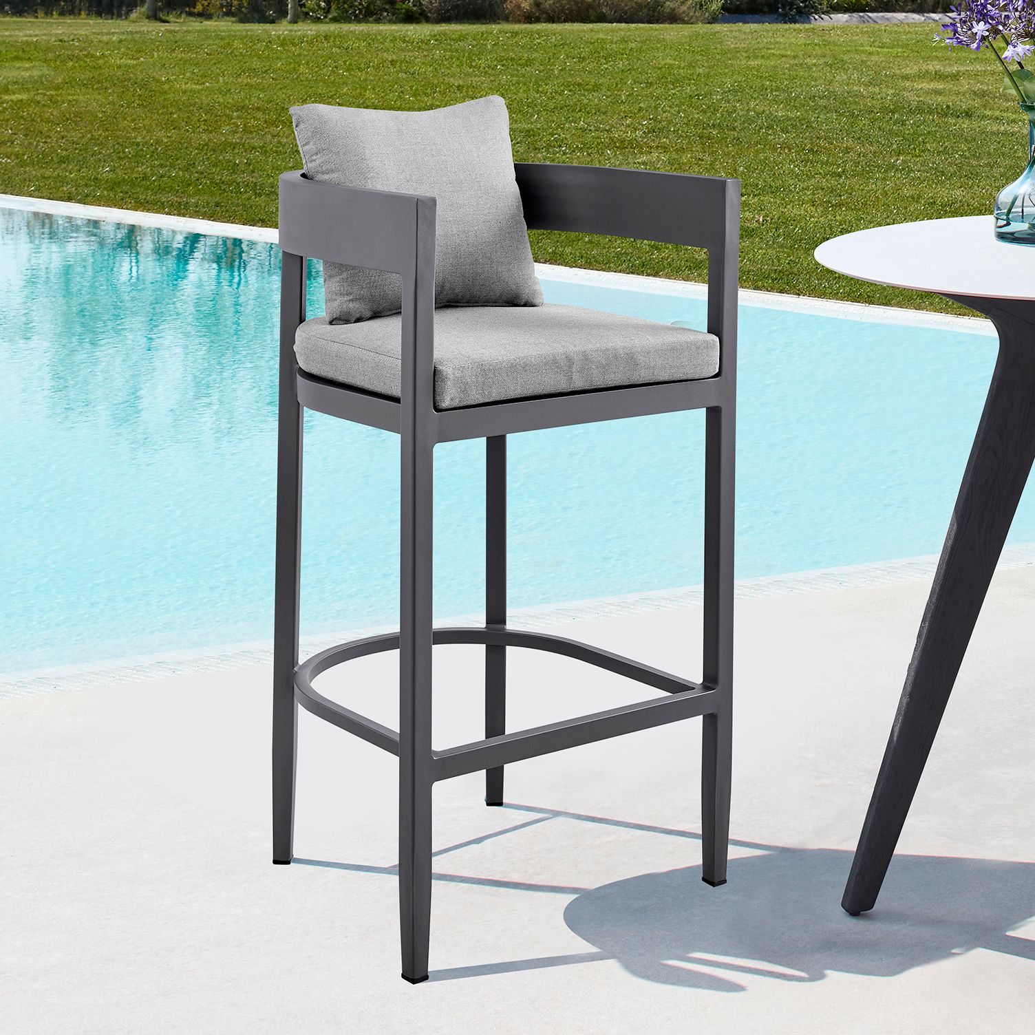 Argiope Outdoor Patio Bar Stool in Aluminum with Cushions