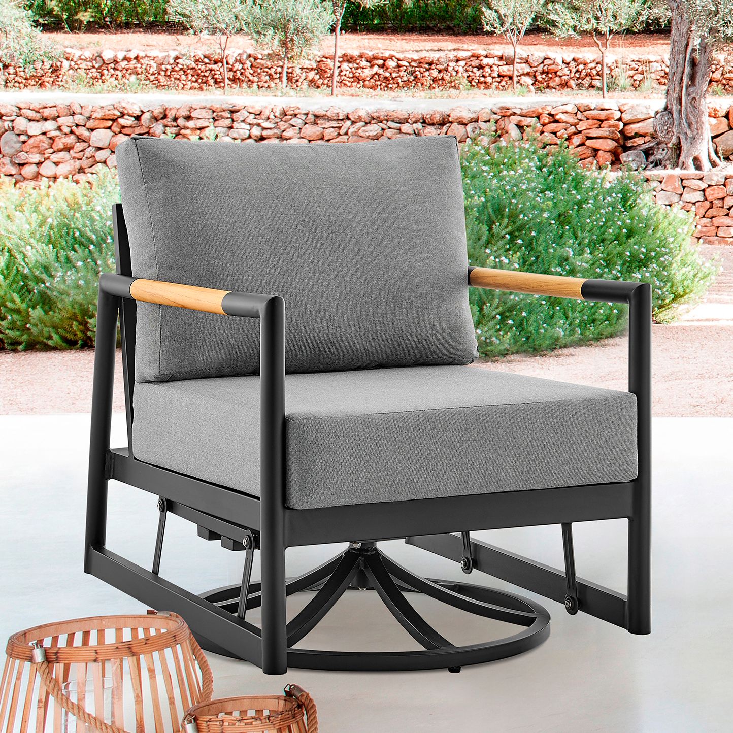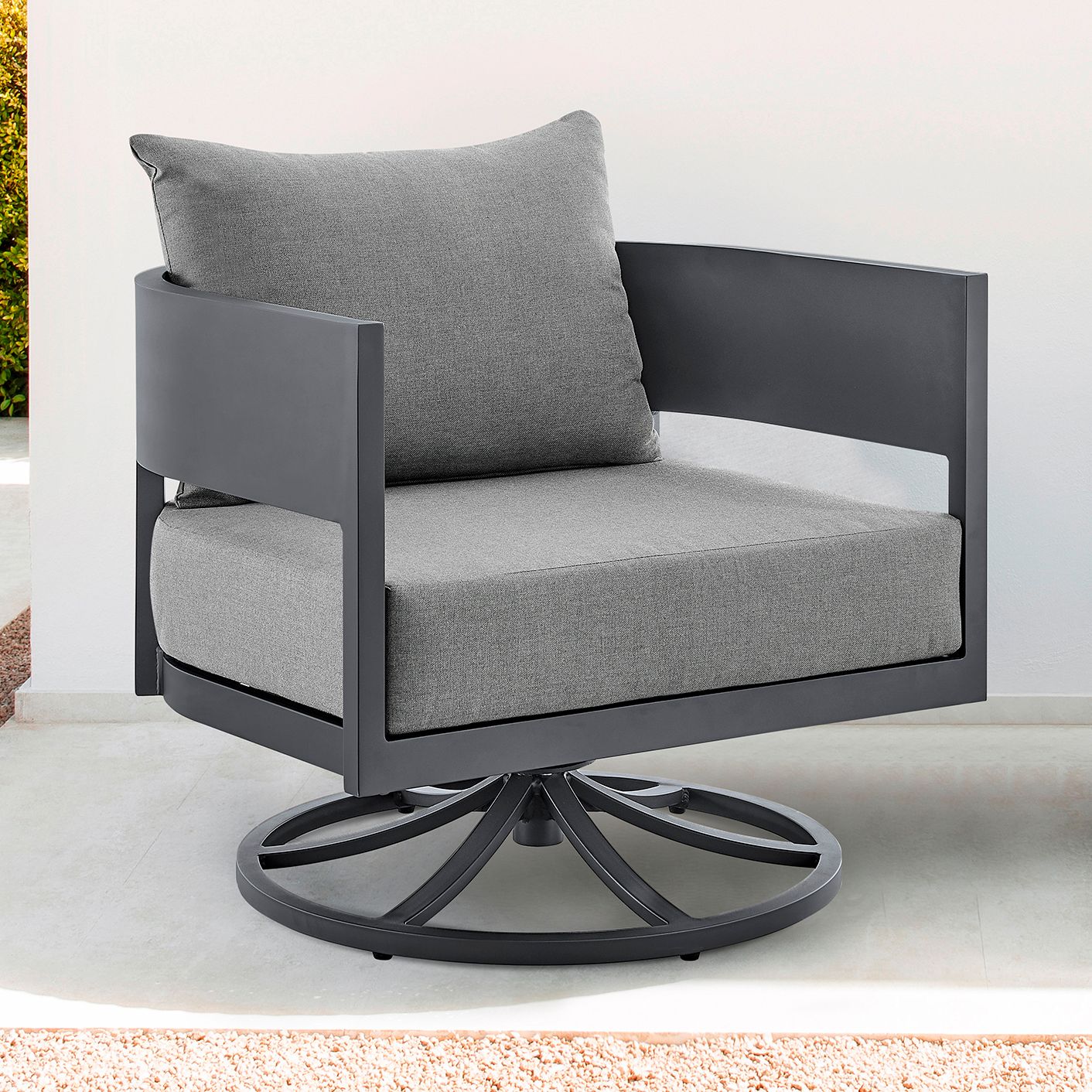 Argiope Outdoor Patio Swivel Rocking Chair in Grey Aluminum with Cushions