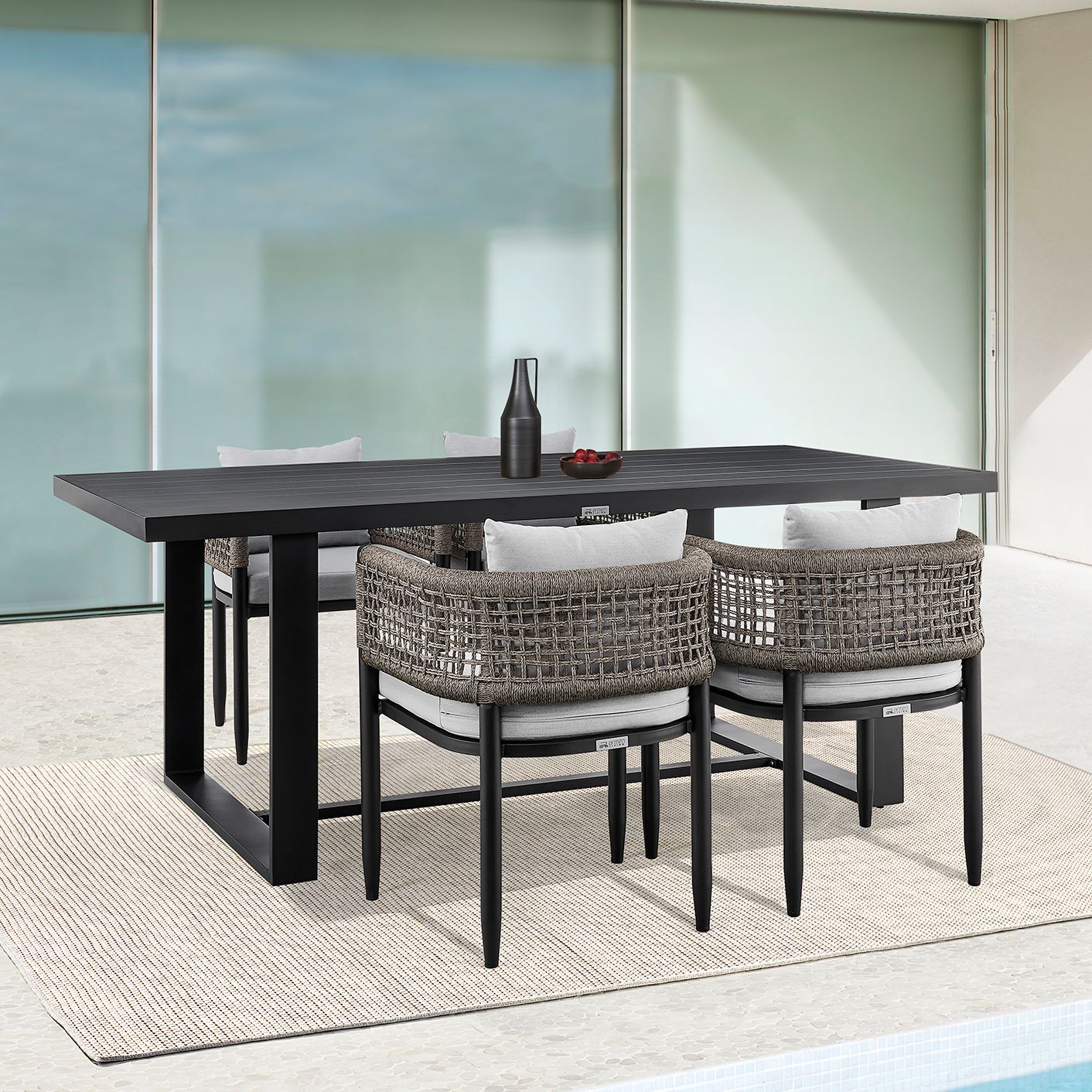 Felicia Outdoor 5-Piece Dining Table Set in Aluminum with Rope and Cushions