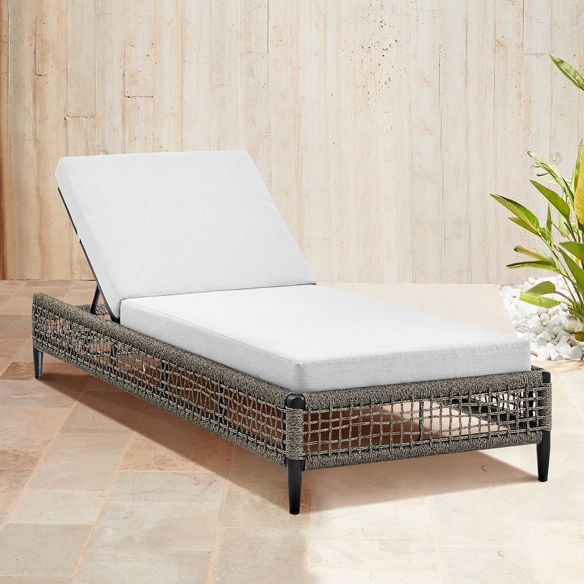 Zella Outdoor Chaise Lounge Chair in Aluminum, Rope, and Earl Gray Cushions