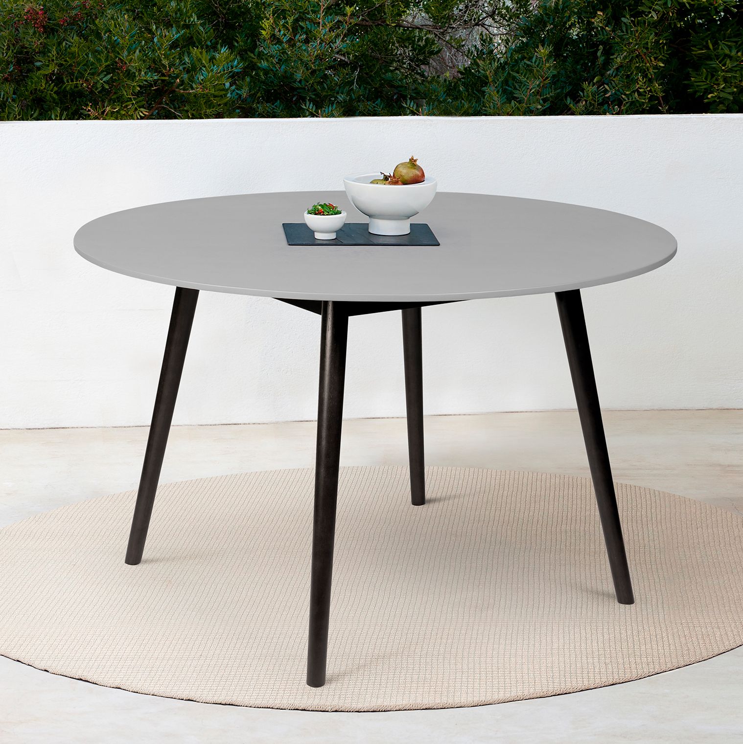 Sydney Outdoor Patio Round Dining Table in Dark Eucalyptus and Grey Stone