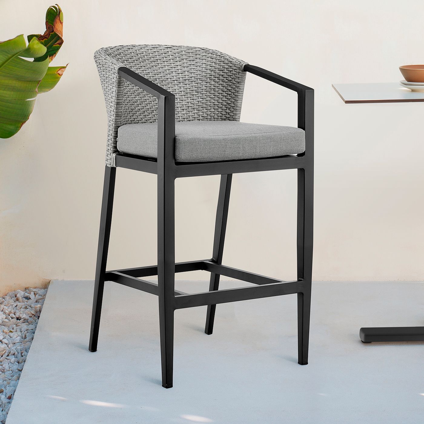 Aileen Outdoor Counter Height Bar Stool in Aluminum and Wicker with Cushion