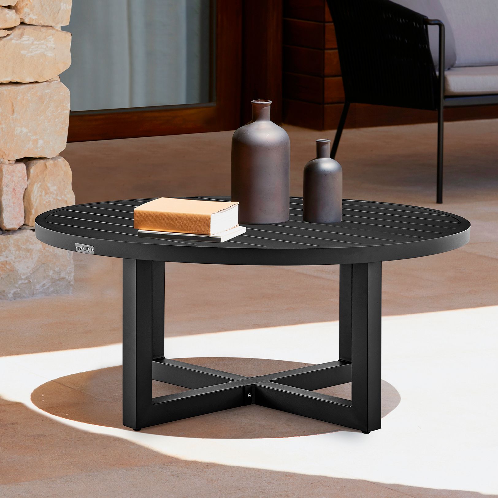 Argiope Outdoor Patio Round Coffee Table in Black Aluminum