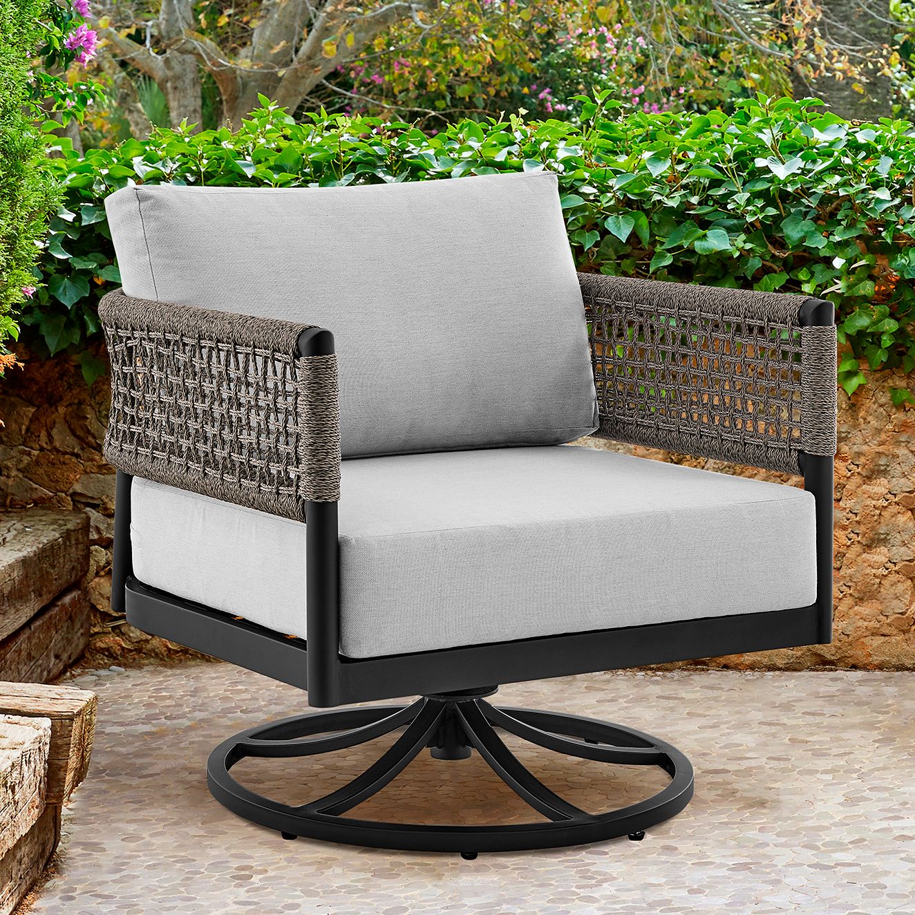 Felicia Outdoor Patio Swivel Rocking Chair in Black Aluminum and Grey Rope