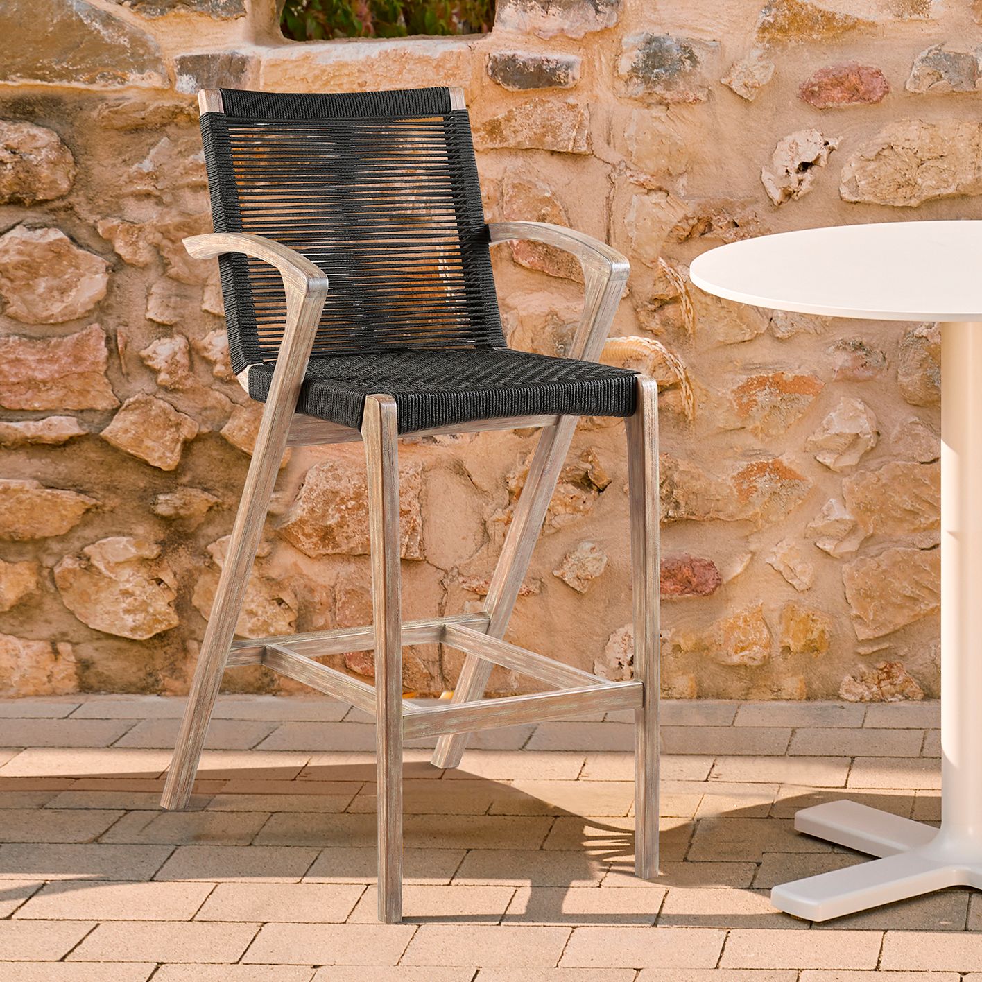 Tutti Frutti Indoor Outdoor Bar Height Bar Stool in Aged Wood with Rope