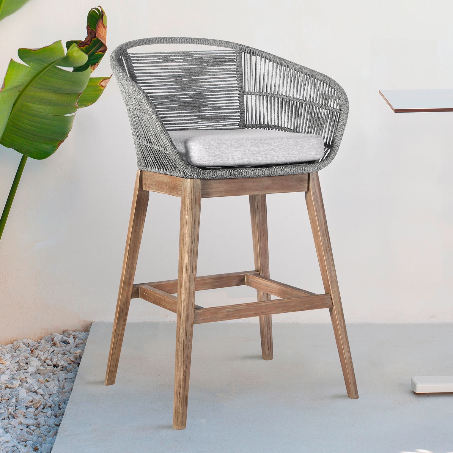 Vivid 27.5 in. Outdoor Barstool in Eucalyptus Wood, Gray Olefin Cushions