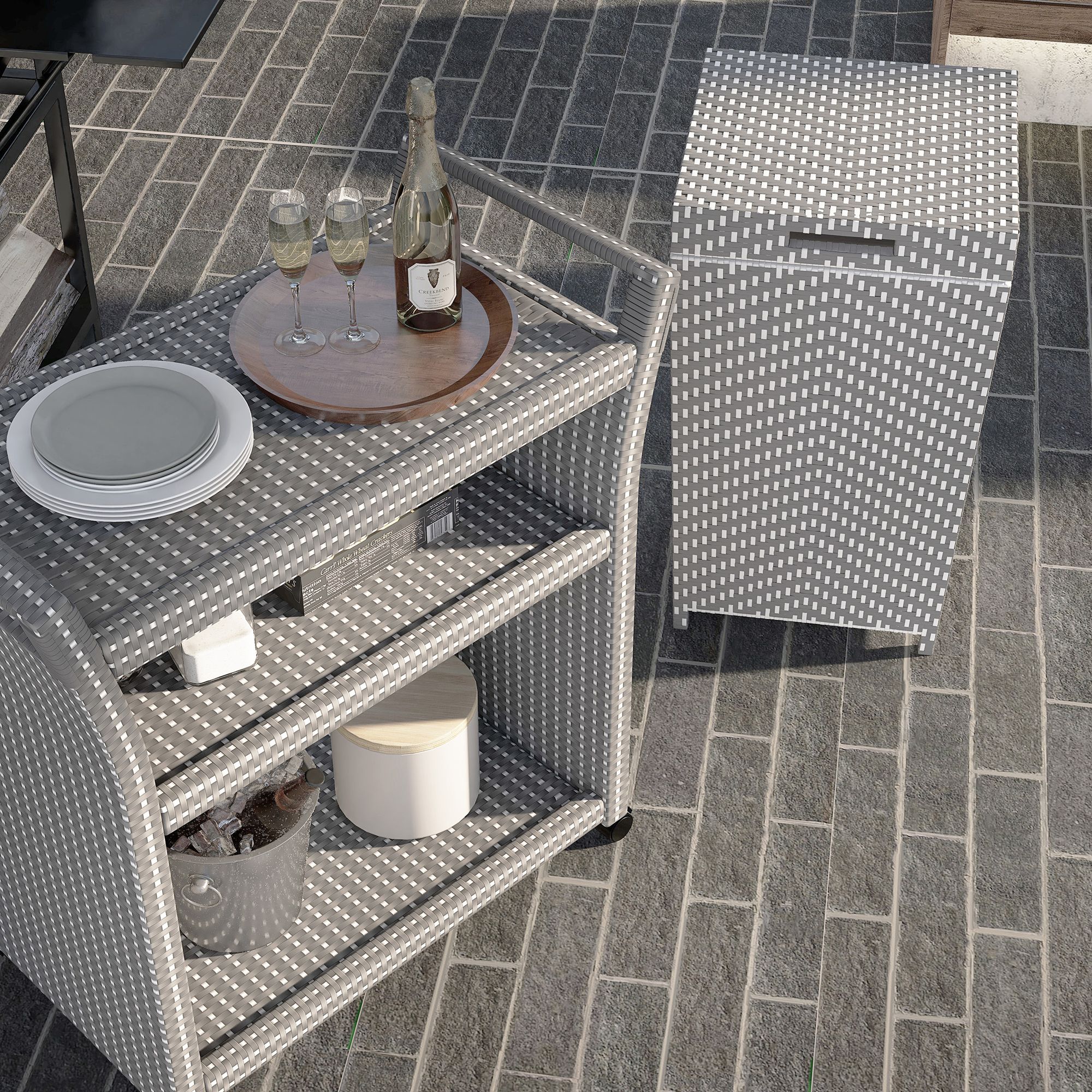 Anderson Gray White Coastal Woven Wicker Serving Cart and Trash Can Set