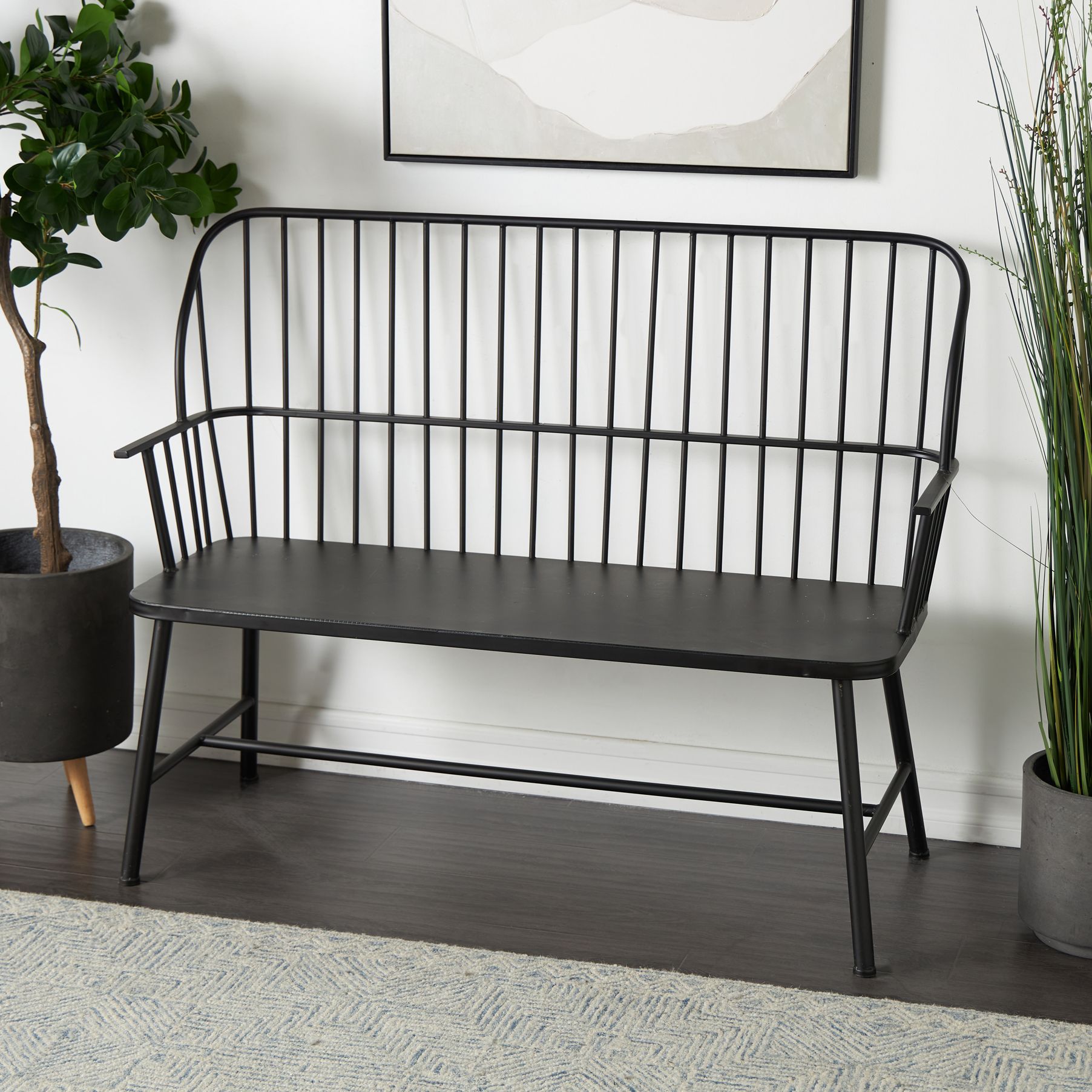 Black Metal Farmhouse Outdoor Bench, 48" x 19" x 38"