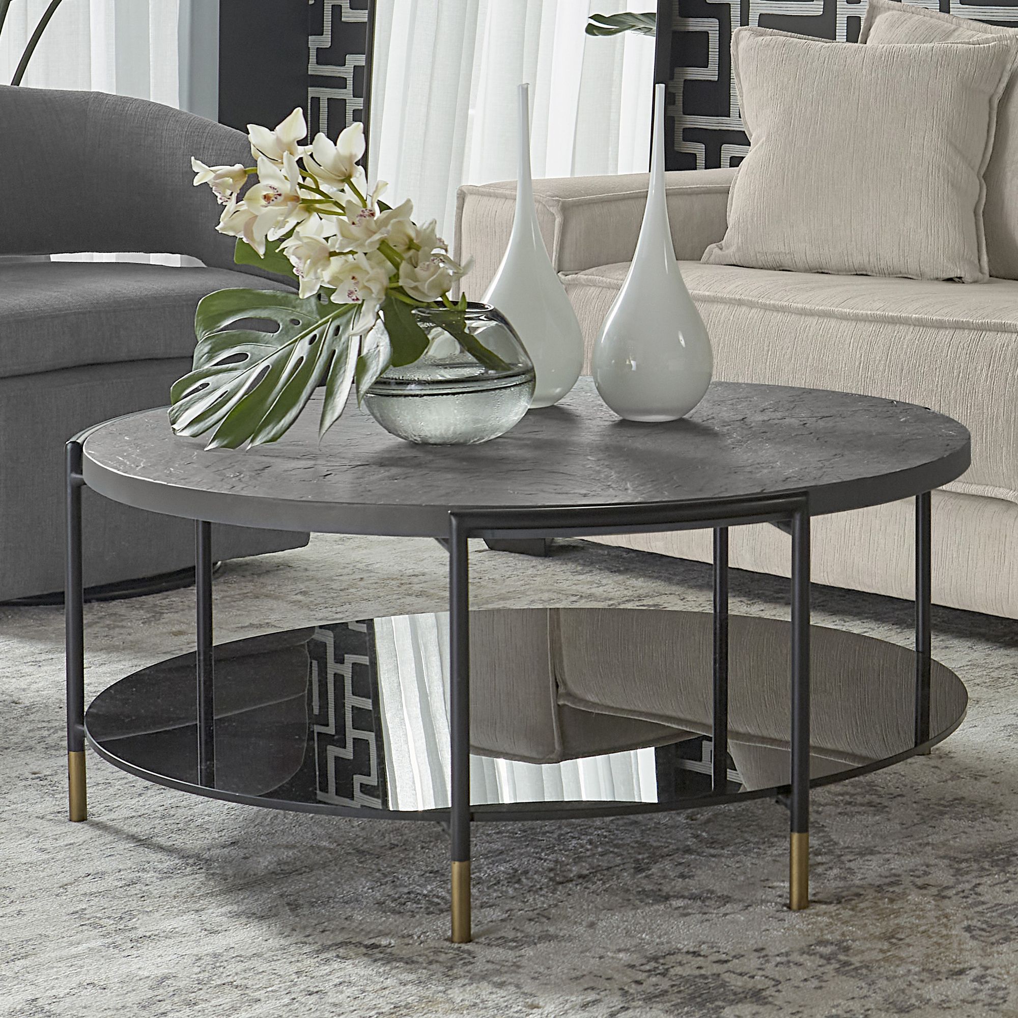 Arteriors Etta Outdoor Coffee Table Black Concrete Composite