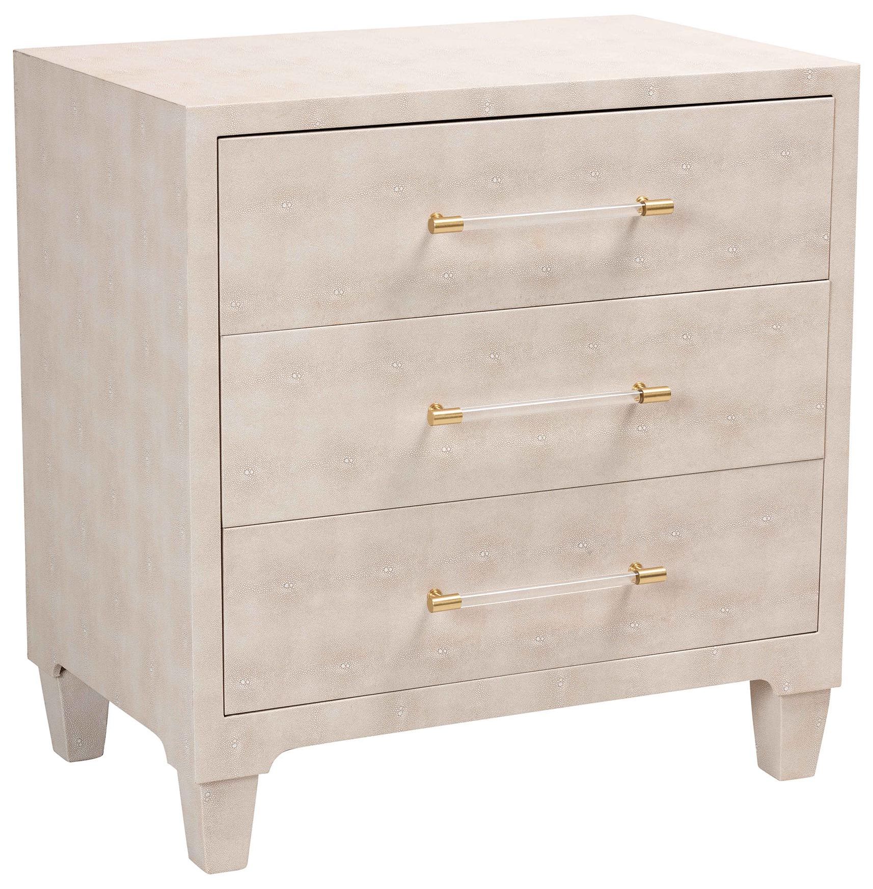 Baxton Studio Nira Modern Beige Faux Shagreen 3 Drawer Storage Cabinet