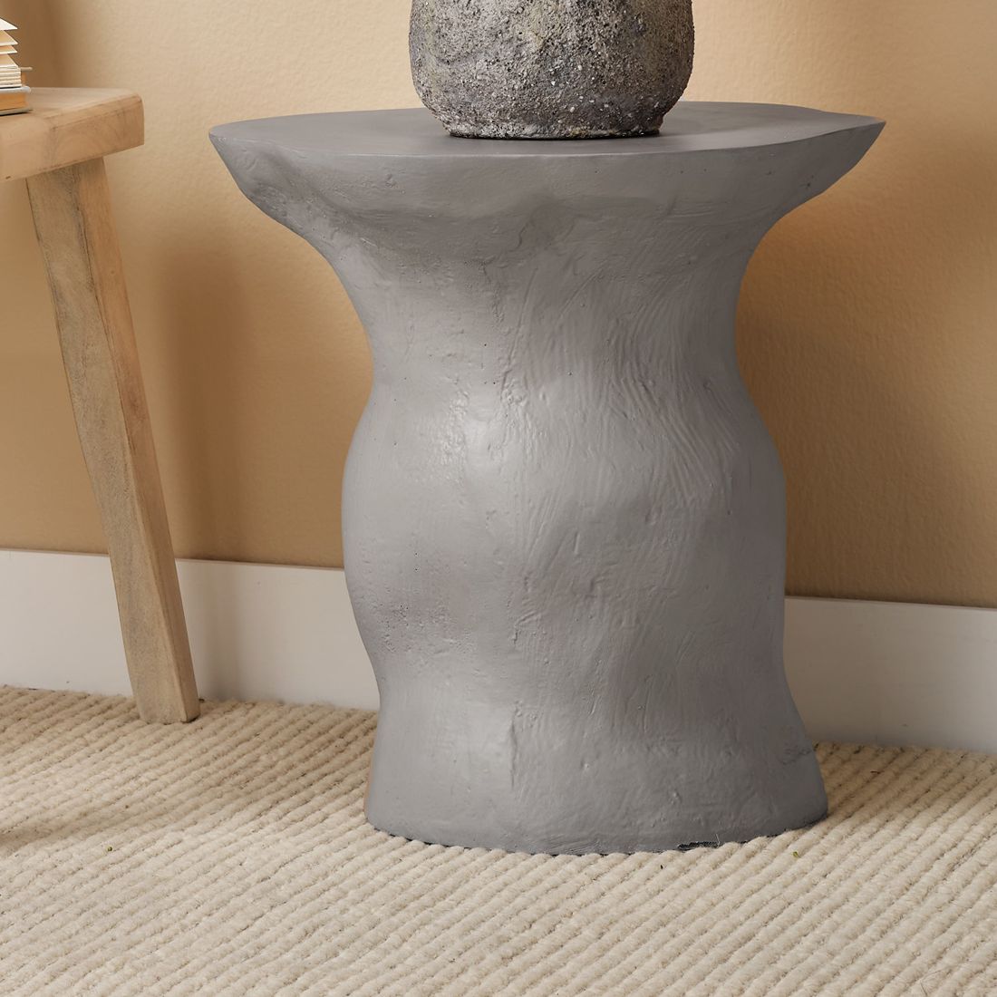 Jamie Young Sculpt Fiber Glass Indoor/Outdoor Cement Rustic Side Table