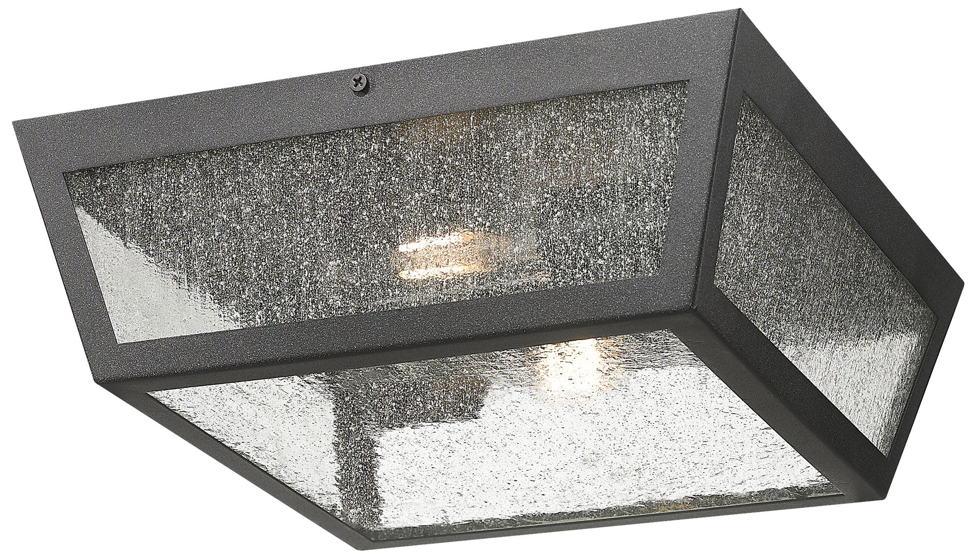 Madison 12" 2-Light Matte Black Outdoor Flush Mount With Seeded Glass Shade