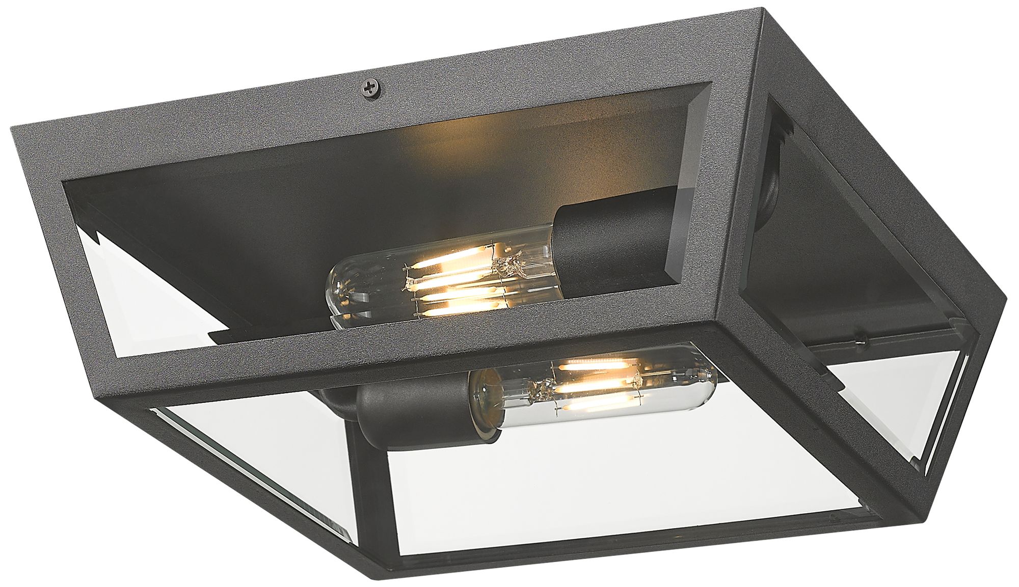 Madison 12" 2-Light Matte Black Outdoor Flush Mount With Clear Glass Shade