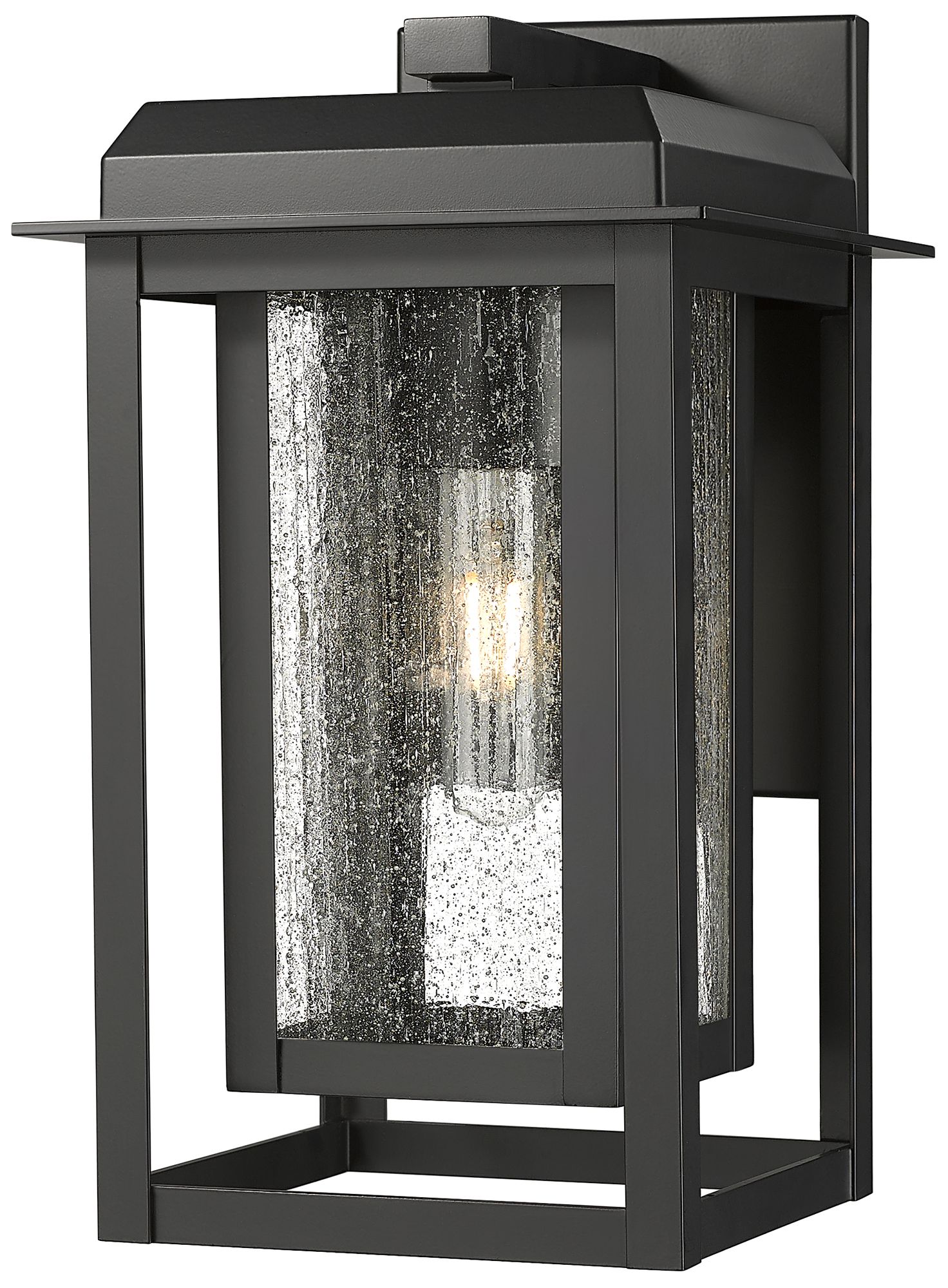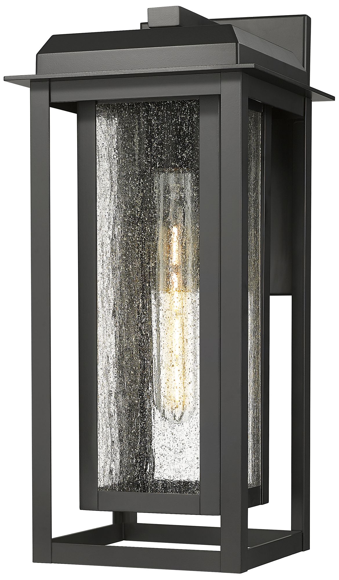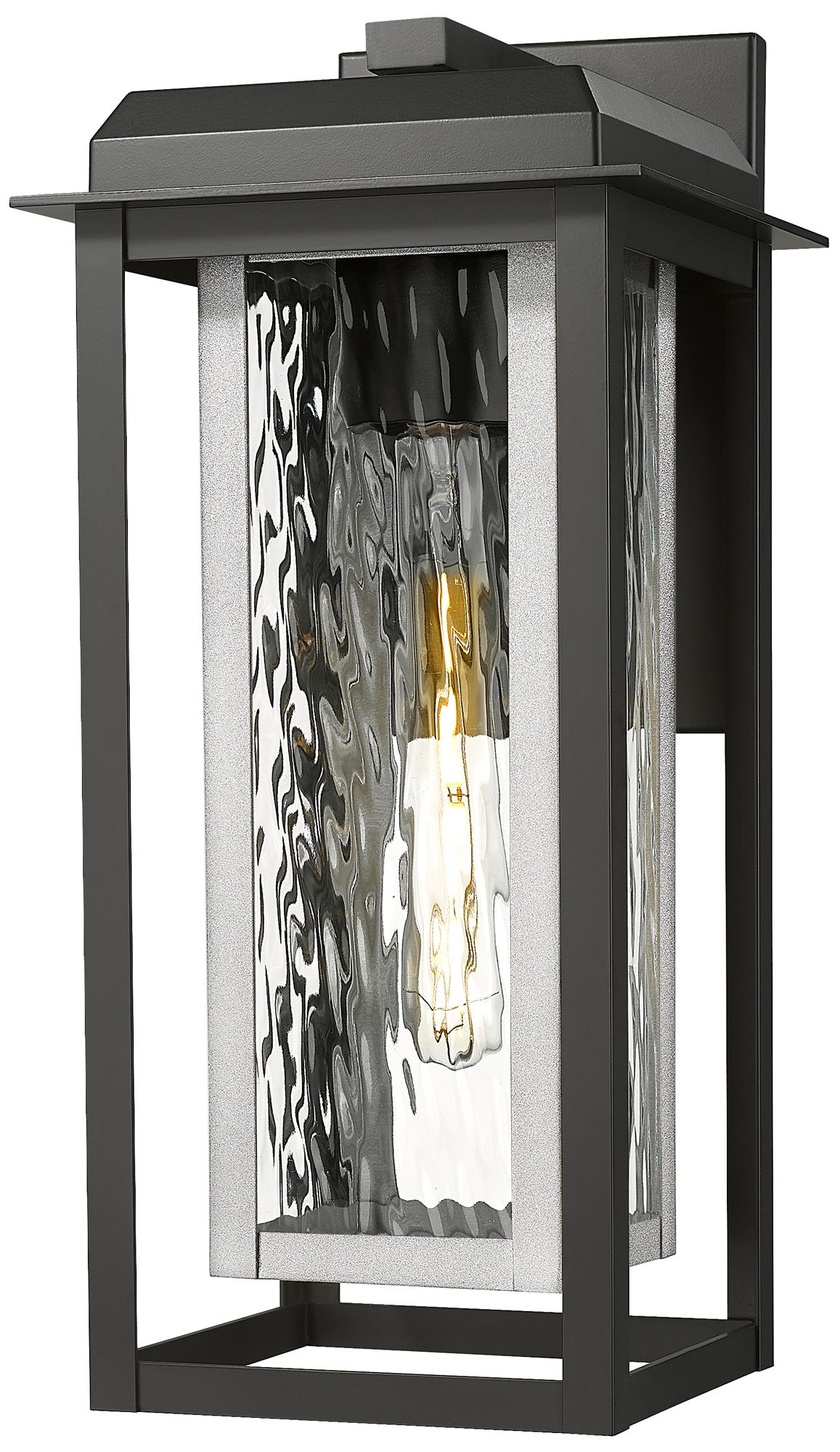 Mansfield 17" Matte Black & Silver Coastal Outdoor Sconce With Water Glass