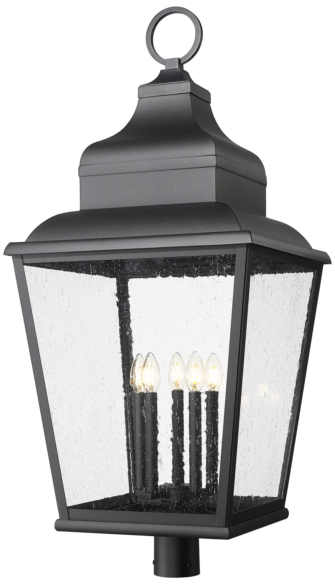 Ashland 7" Matte Black Outdoor Lantern Post Light With Seeded Glass